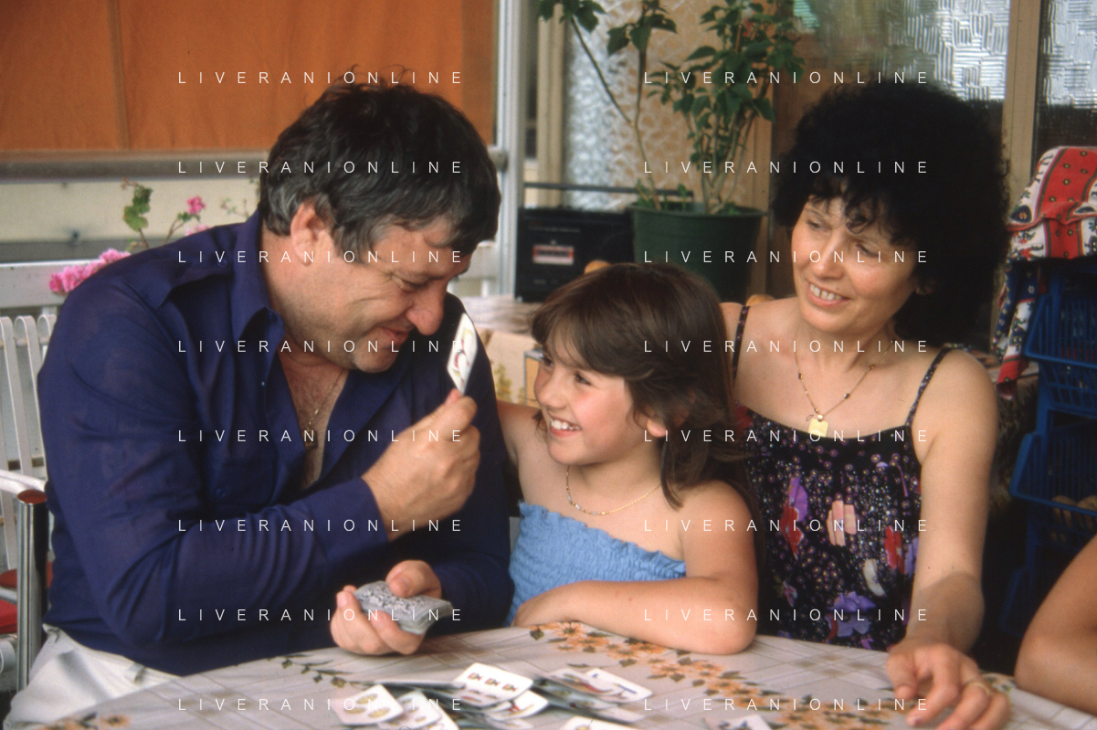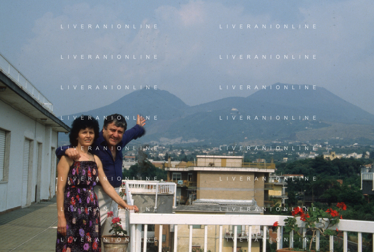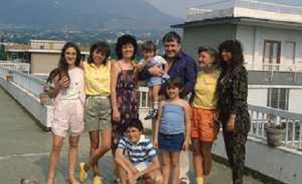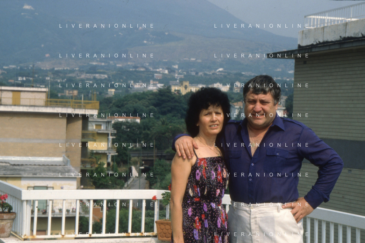 DIAP-RETROSPETTIVA MARIO MEROLA CANTANTE E ATTORE NELLA FOTO MARIO MEROLA NELL'ANNO 1983 CON LA MOGLIE ROSA SERRAPIGLIA E I FIGLI A NAPOLI AG ALDO LIVERANI SAS
