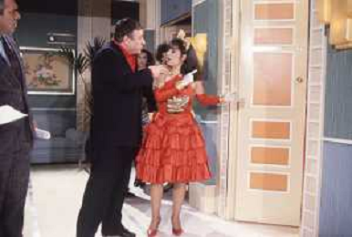 DIAP-RETROSPETTIVA MARIO MEROLA CANTANTE E ATTORE NELLA FOTO MARIO MEROLA CN CARMEN RUSSO NELL'ANNO 1985 NELLA TRASMISSIONE TELEVISIVA “GRAND HOTEL“ AG ALDO LIVERANI SAS