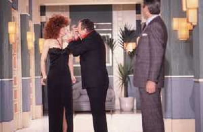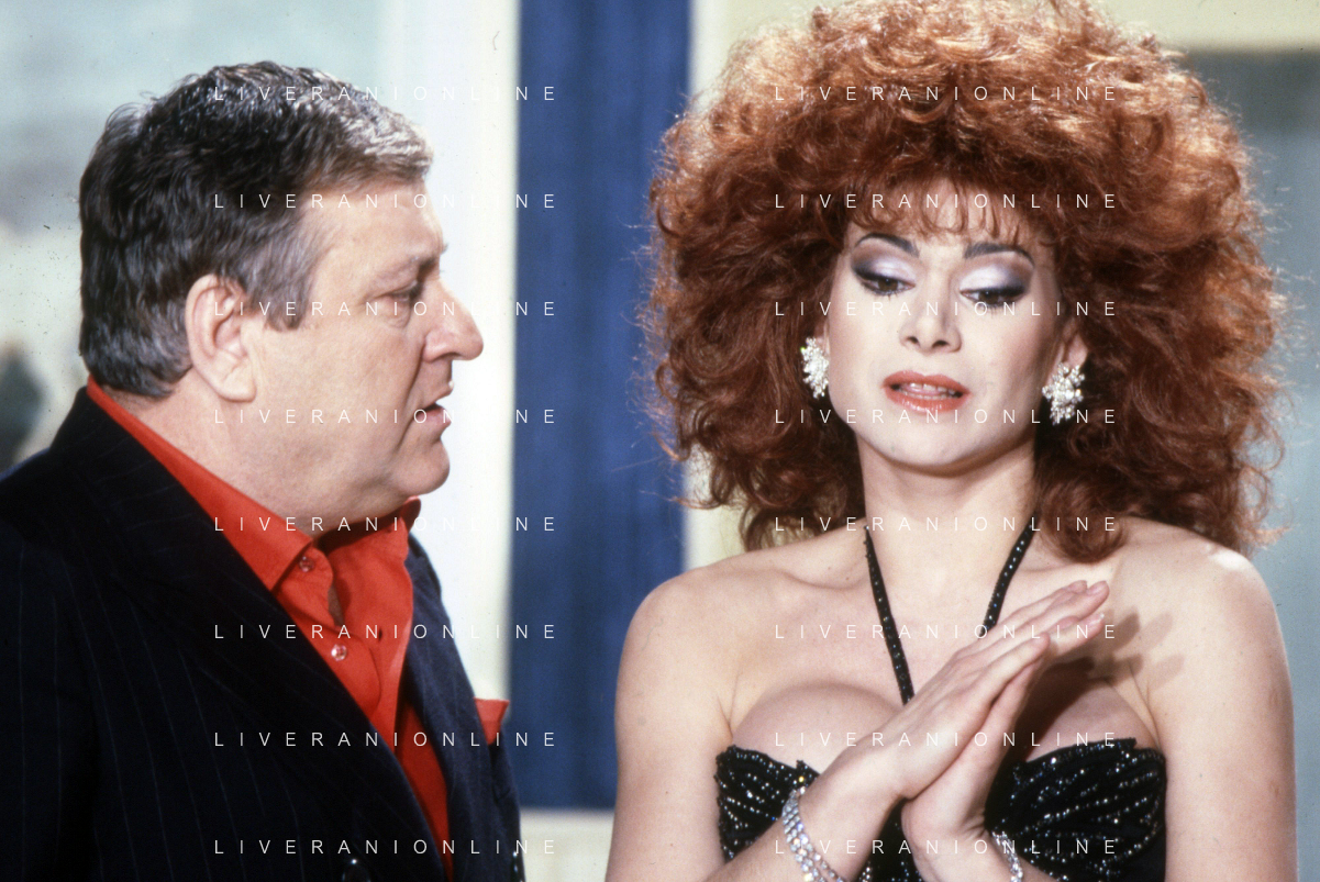 DIAP-RETROSPETTIVA MARIO MEROLA CANTANTE E ATTORE NELLA FOTO MARIO MEROLA CON GEGIA NELL'ANNO 1985 NELLA TRASMISSIONE TELEVISIVA “GRAND HOTEL“ AG ALDO LIVERANI SAS