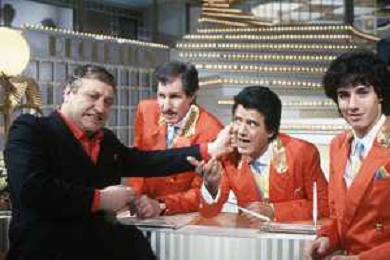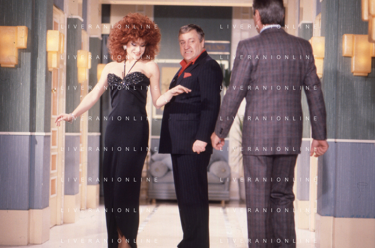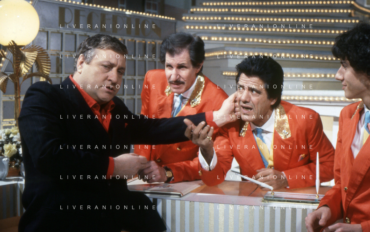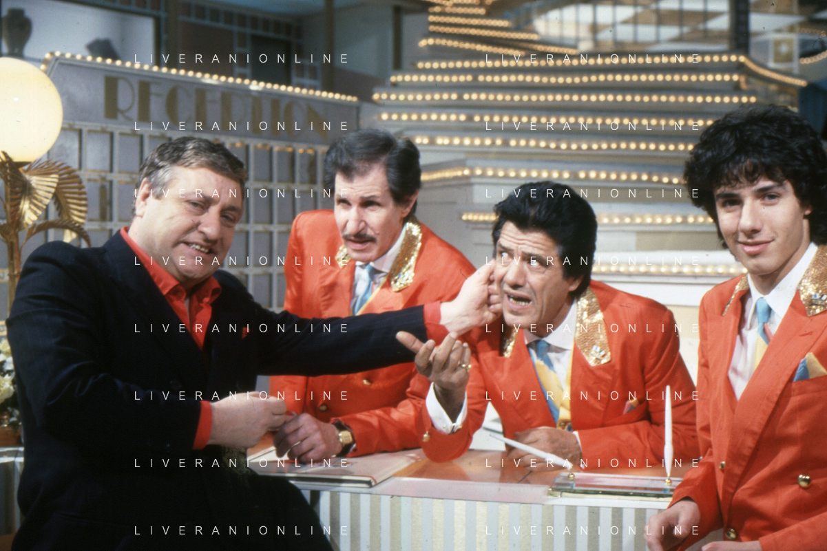 DIAP-RETROSPETTIVA MARIO MEROLA CANTANTE E ATTORE NELLA FOTO MARIO MEROLA CON FRANCO FRANCHI E CICCIO INGRASSIA NELL'ANNO 1985 NELLA TRASMISSIONE TELEVISIVA “GRAND HOTEL“ AG ALDO LIVERANI SAS