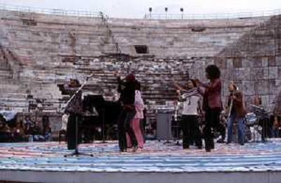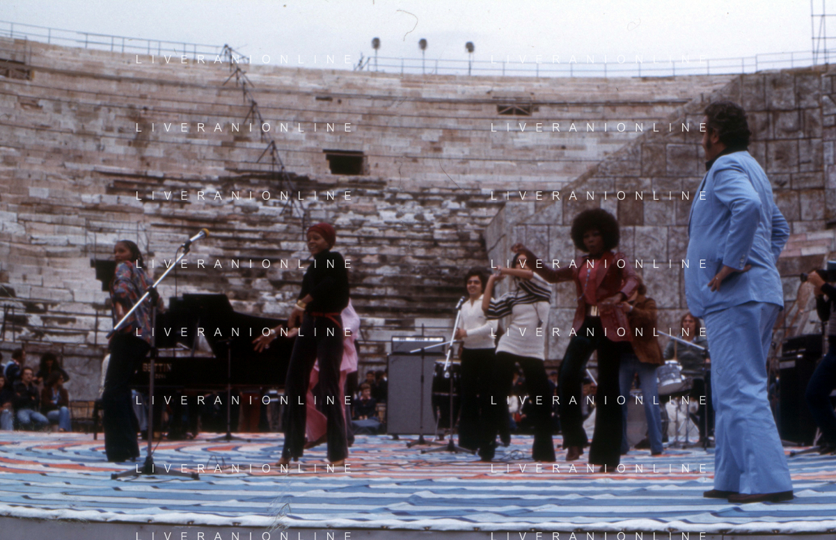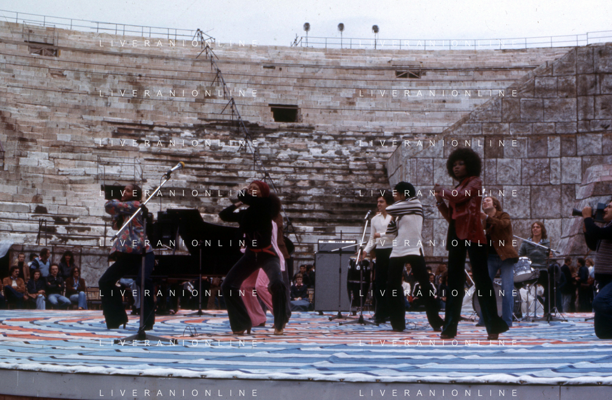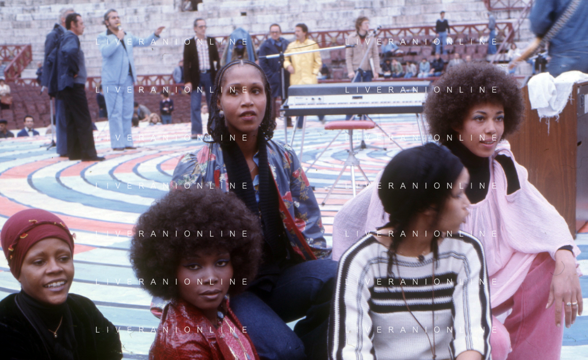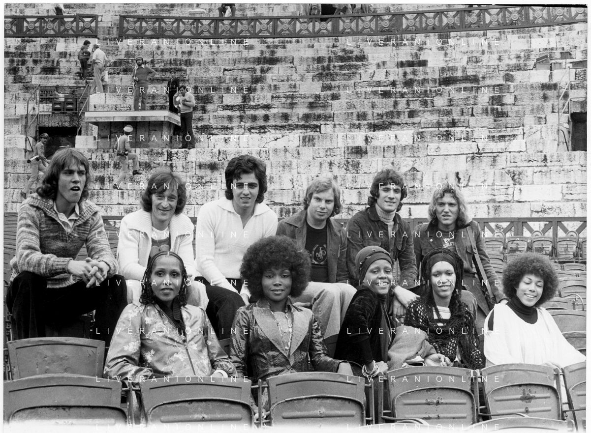 DIA-RETROSPETTIVA LES CHOCOLAT’S GRUPPO MUSICALE NELLA FOTO LES CHOCOLAT’S AL FESTIVALBAR A VERONA NELL’ANNO 1976 ©DOTTI - AGENZIA ALDO LIVERANI SAS