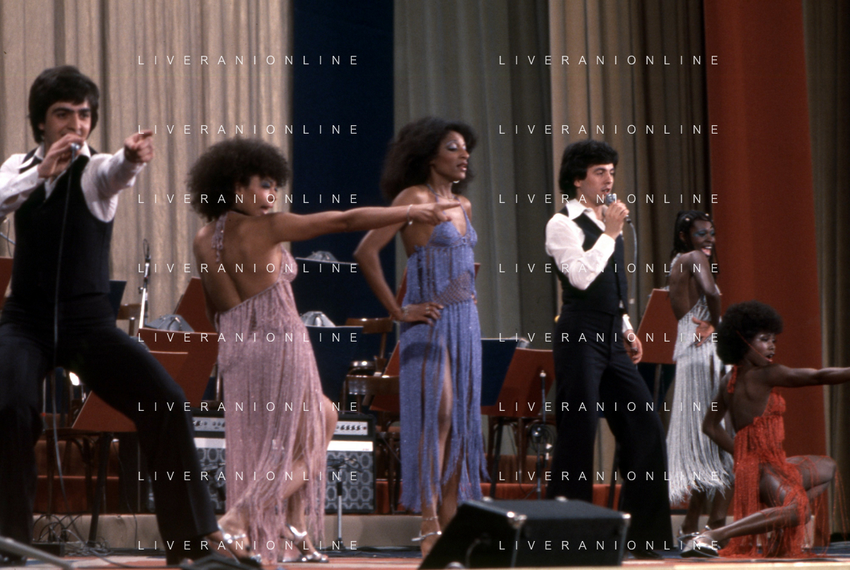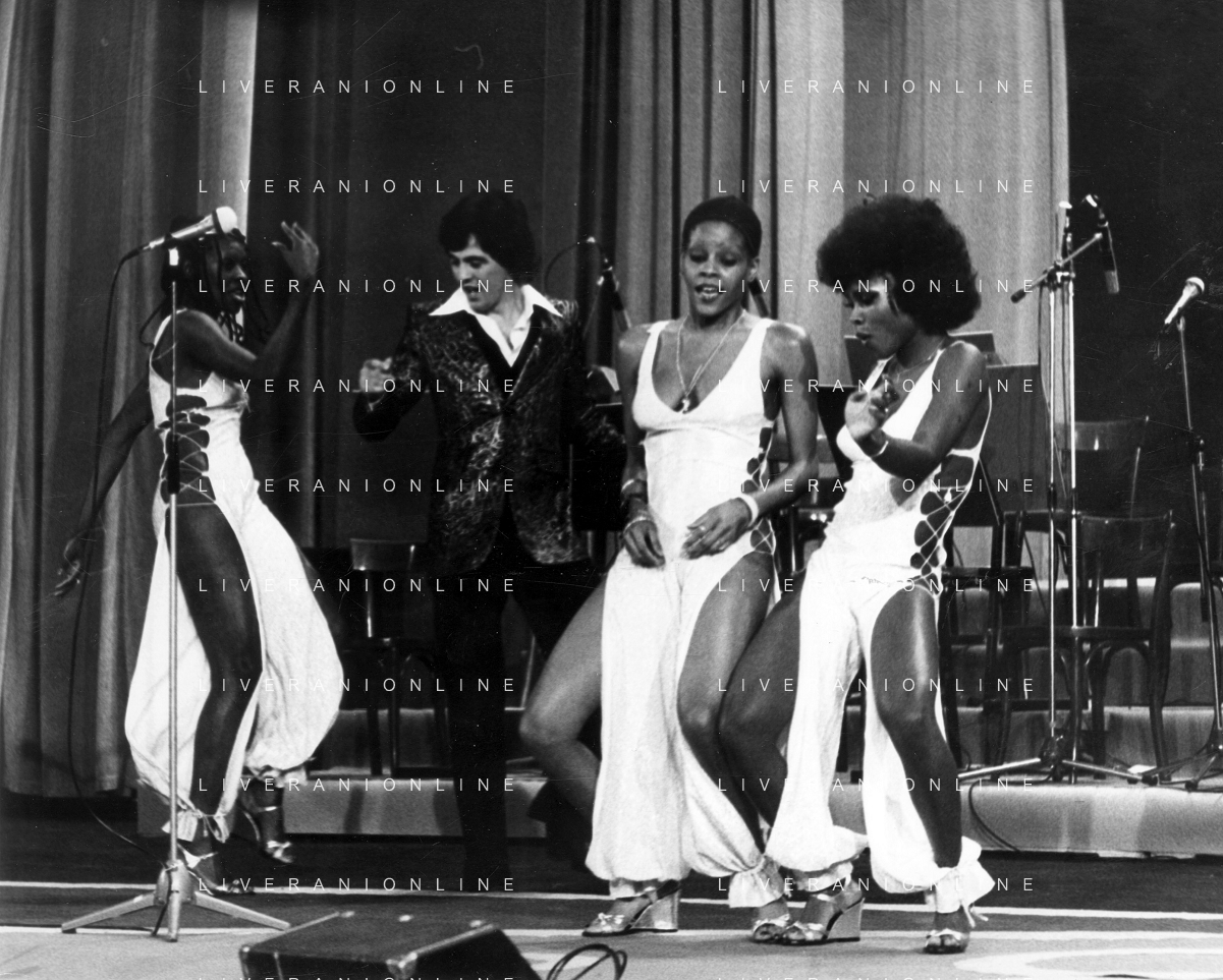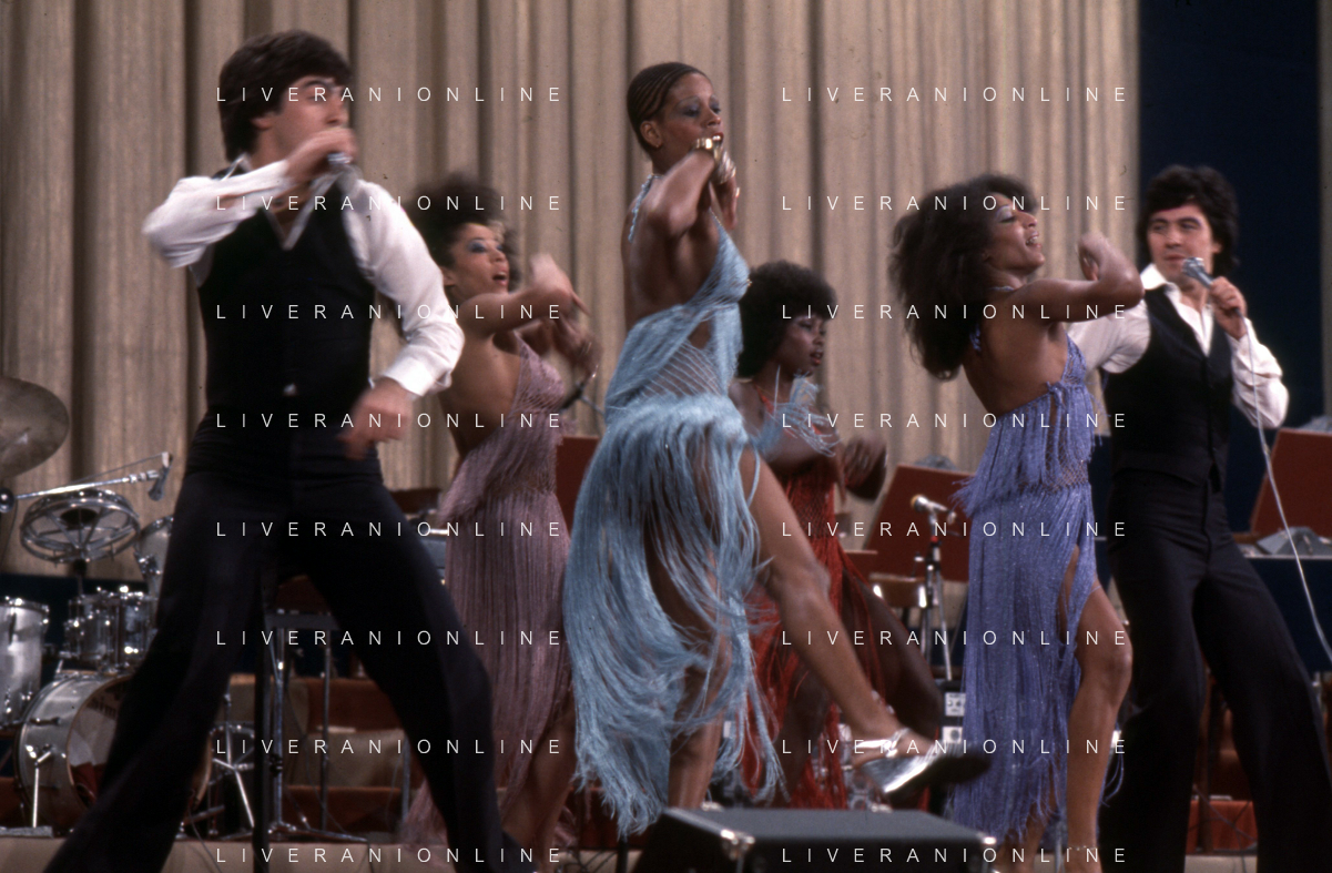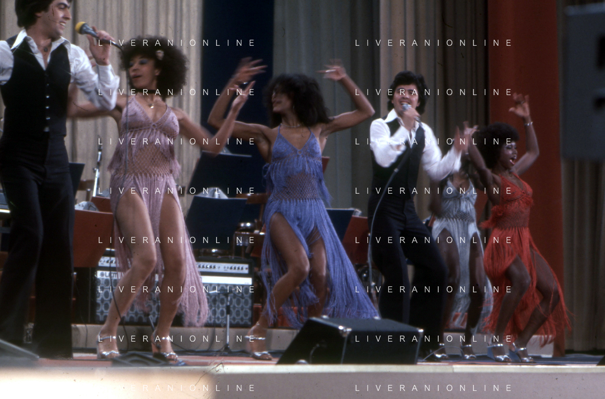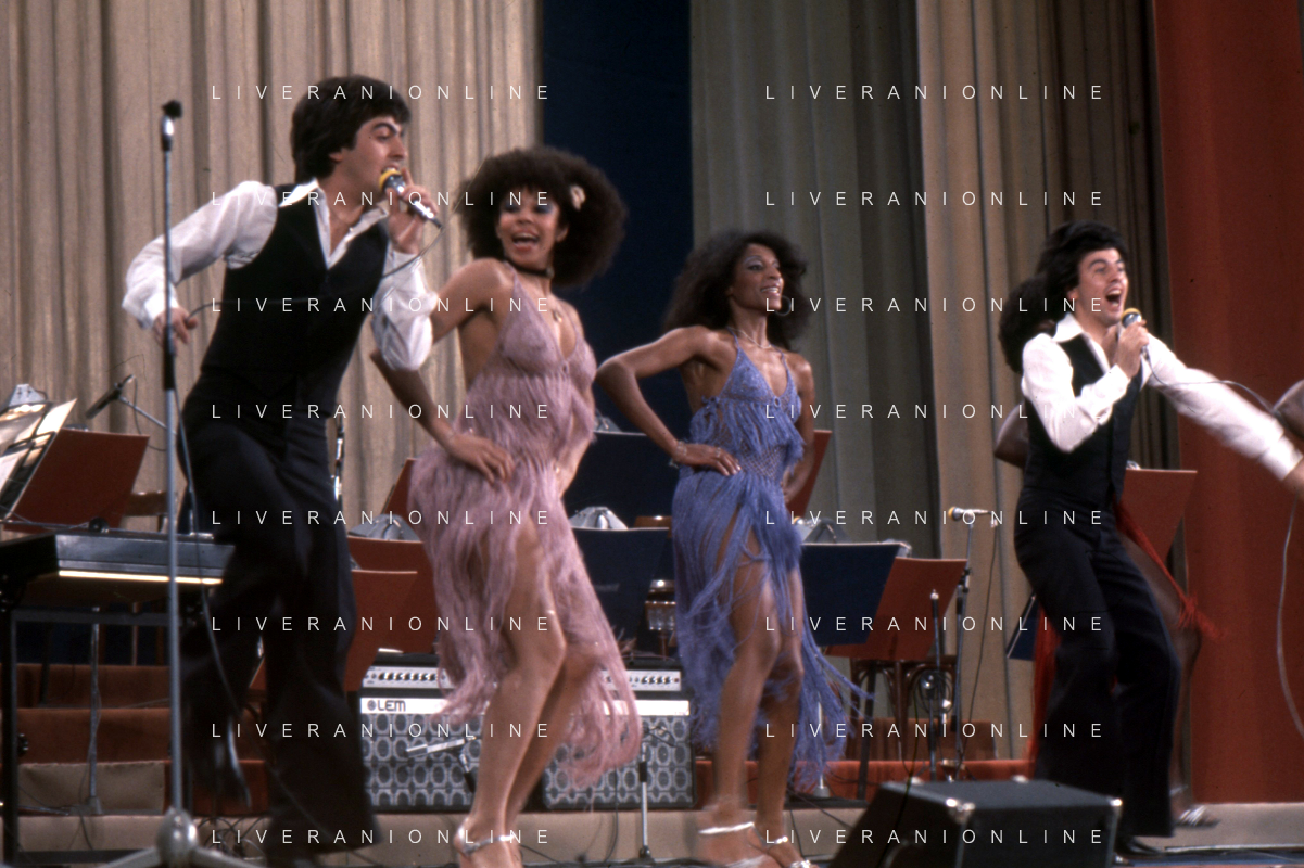 DIA-RETROSPETTIVA LES CHOCOLAT’S GRUPPO MUSICALE NELLA FOTO LES CHOCOLAT’S AL FESTIVAL DI SANREMO NELL’ANNO 1977 AG ALDO LIVERANI SAS
