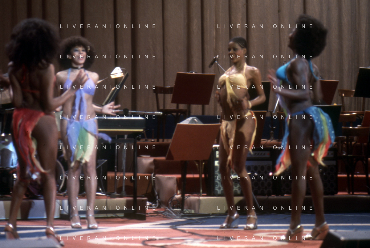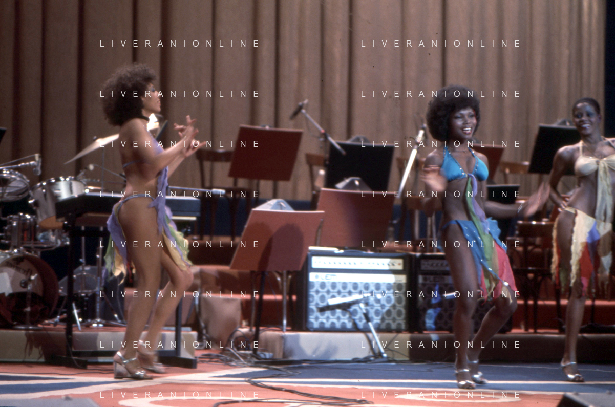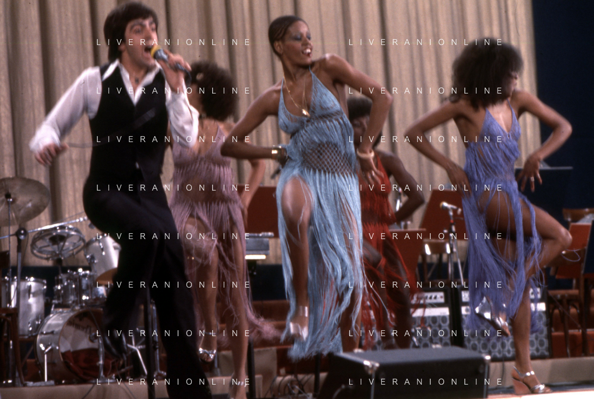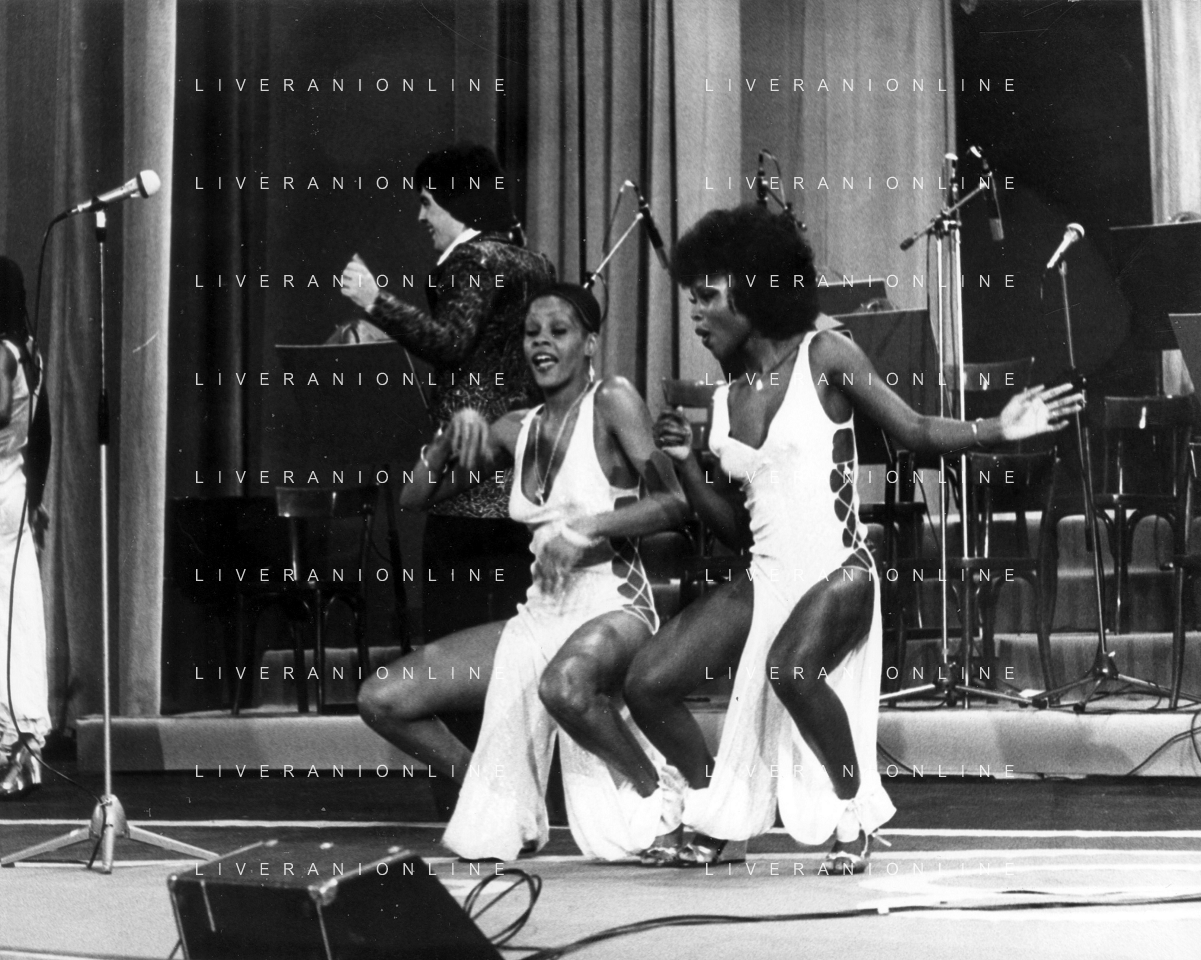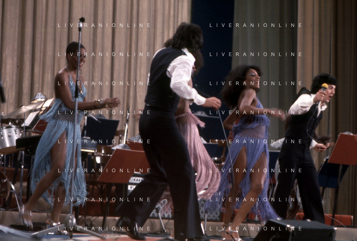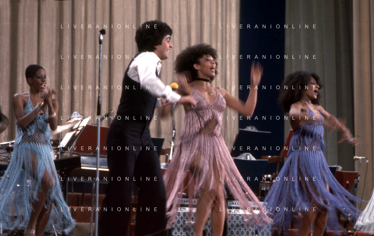 DIA-RETROSPETTIVA LES CHOCOLAT’S GRUPPO MUSICALE NELLA FOTO LES CHOCOLAT’S AL FESTIVAL DI SANREMO NELL’ANNO 1977 AG ALDO LIVERANI SAS
