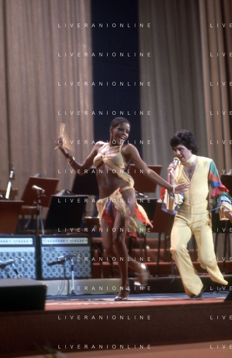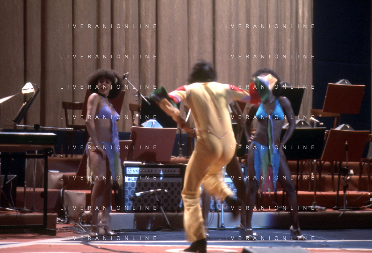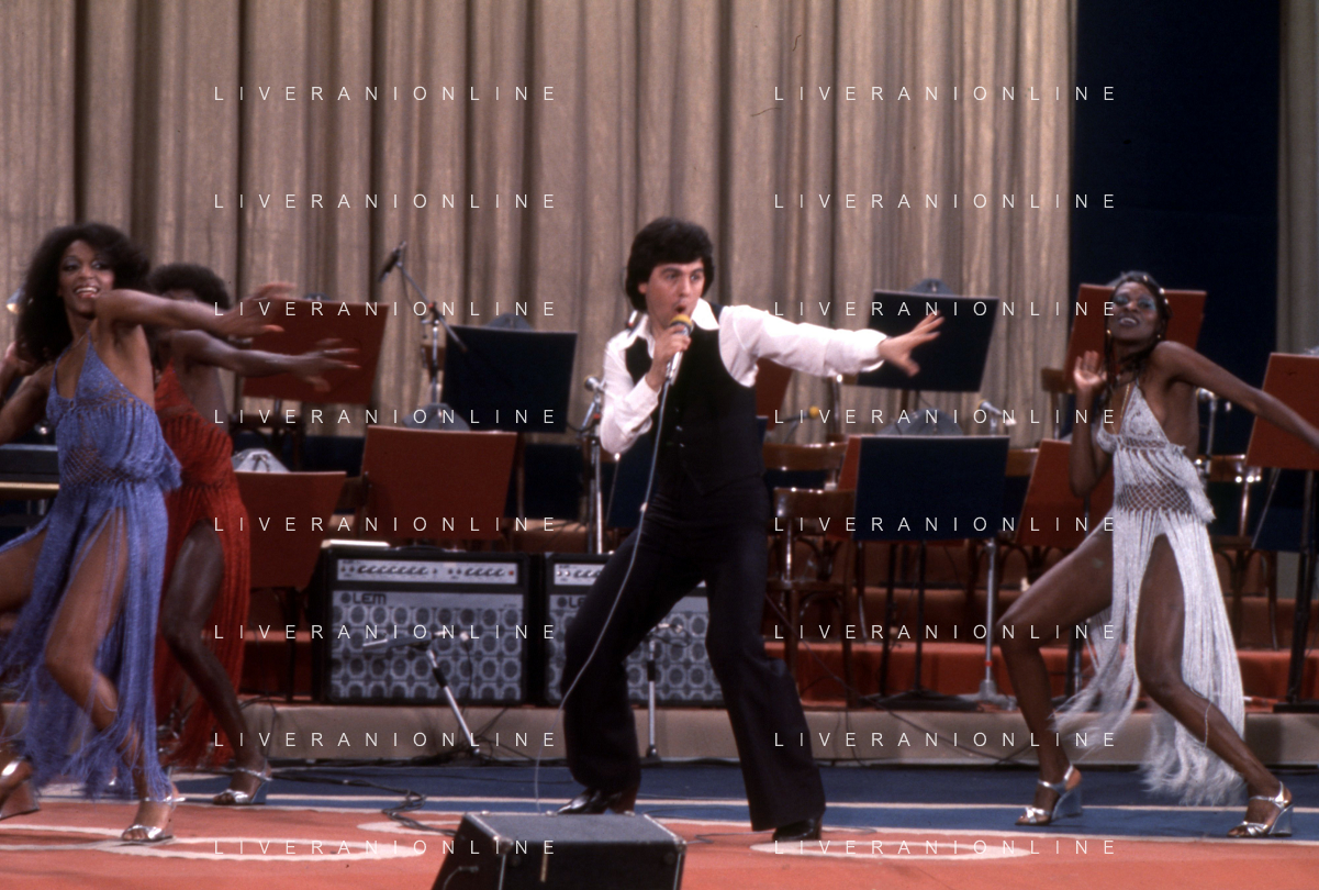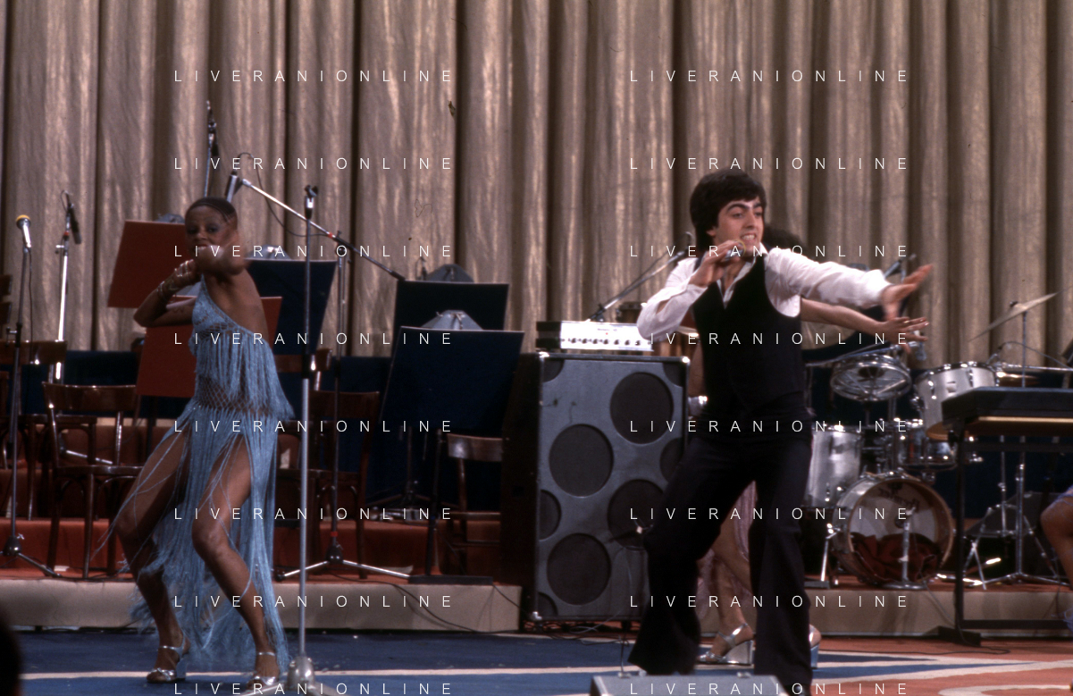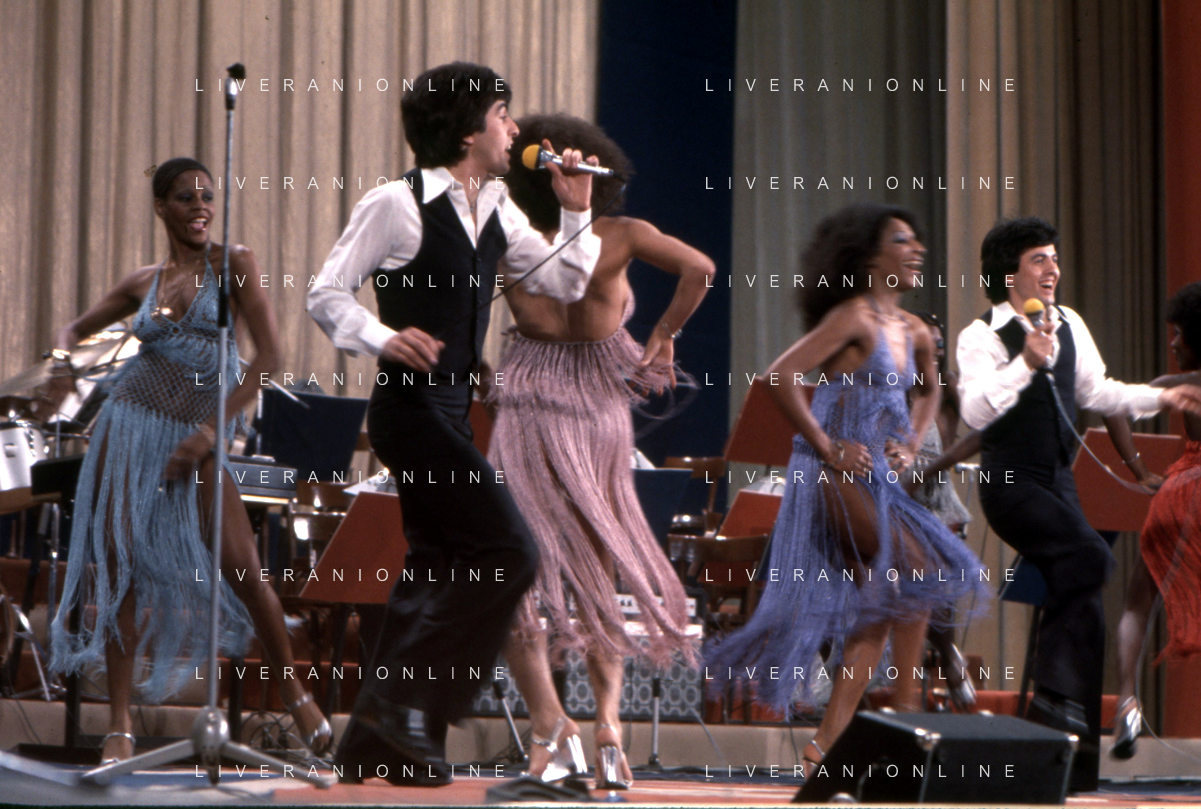 DIA-RETROSPETTIVA LES CHOCOLAT’S GRUPPO MUSICALE NELLA FOTO LES CHOCOLAT’S AL FESTIVAL DI SANREMO NELL’ANNO 1977 AG ALDO LIVERANI SAS