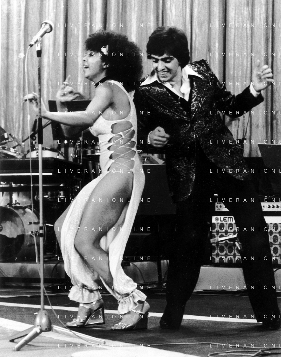 DIA-RETROSPETTIVA LES CHOCOLAT’S GRUPPO MUSICALE NELLA FOTO LES CHOCOLAT’S AL FESTIVALBAR A VERONA NELL’ANNO 1976 CON VITTORIO SALVETTI ©DOTTI - AGENZIA ALDO LIVERANI SAS