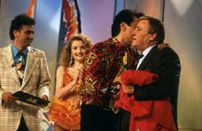 DIAP-RETROSPETTIVA MARIO MEROLA CANTANTE E ATTORE NELLA FOTO MARIO MEROLA NELL'ANNO 1993 OSPITE DELLLA TRASMISSIONE TELEVISIVA “SCHERZI A PARTE' AG ALDO LIVERANI SAS