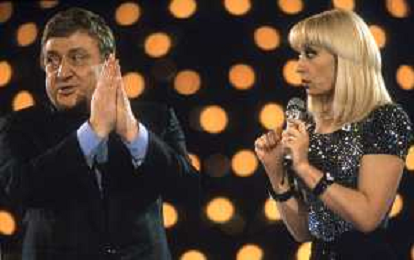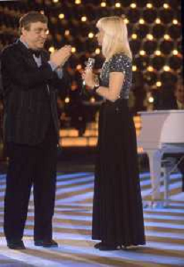 DIAP-RETROSPETTIVA MARIO MEROLA CANTANTE E ATTORE NELLA FOTO MARIO MEROLA NELL'ANNO 1987 OSPITE DELLA TRASMISSIONE TELEVISIVA “RAFFAELLA CARRA SHOW “ E LELLO ARENA AG ALDO LIVERANI SAS