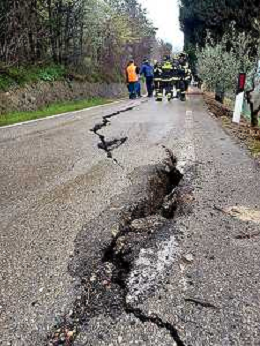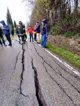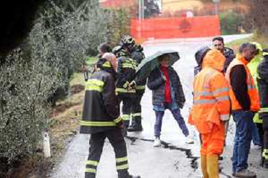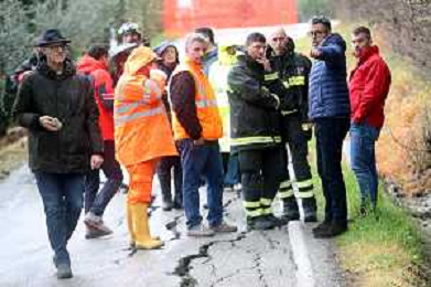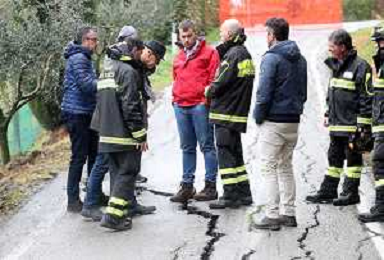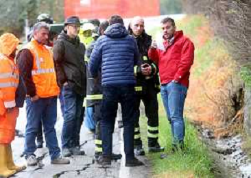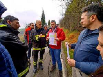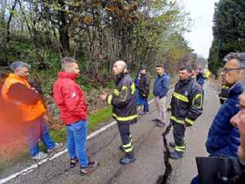 IMOLA 14 03 2025 FIUME SANTERNO IN PIENA NELLA FOTO VIA PIEVE DI SANT'ANDREA STRADA FRANATA DOPO LE PIOGGIE INTENSE SUL POSTO SINDACO DI IMOLA MARCO PANIERI,I VIGILI DEL FUOCO, OPERATORI COMUNALI E RESIDENTI BLOCCATI FOTO GIANNA SANNA-AG ALDO LIVERANI SAS