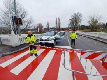IMOLA 14 03 2025 FIUME SANTERNO IN PIENA NELLA FOTO LA CHIUSURA DELLA STRADA SUL PONTE DI VIALE DANTE FOTO GIANNA SANNA-AG ALDO LIVERANI SAS