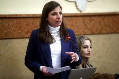 IMOLA 14-03 2025 CONSIGLIO COMUNALE SANITA' PRESENZA DI ASSESSORE ALLA SANITA' REGIONALE EMILIA ROMAGNA MASSIMO FABI NELLA FOTO SERENA BUGANI CAPO GRUPPO IN CONSIGLIO COMUNALE FRATELLI D'ITALIA FOTO GIANNI SANNA-AG ALDO LIVERANI SAS