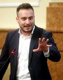 IMOLA 14-03 2025 CONSIGLIO COMUNALE SANITA' PRESENZA DI ASSESSORE ALLA SANITA' REGIONALE EMILIA ROMAGNA MASSIMO FABI NELLA FOTO NICHOLAS VACCHI VICE PRESIDENTE DEL CONSIGLIO COMUNALE FRATELLI D'ITALIA FOTO GIANNI SANNA-AG ALDO LIVERANI SAS