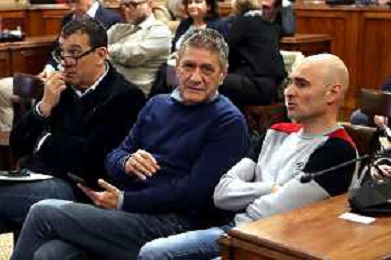IMOLA 14-03 2025 CONSIGLIO COMUNALE SANITA' PRESENZA DI ASSESSORE ALLA SANITA' REGIONALE EMILIA ROMAGNA MASSIMO FABI NELLA FOTO GIUSEPPE RAGO UIL IMOLA IN CENTRO CON GAETANO LOMBARDO CISL E STEFANO MONI CGIL FOTO GIANNI SANNA-AG ALDO LIVERANI SAS