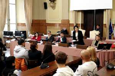 IMOLA 15 03 2025 si e’ svolta la cerimonia in Comune per i residenti a Imola di origine straniera che hanno ottenuto la cittadinanza italiana. NELLA FOTO DA DESTRA ASSESSORE ELENA PENAZZI, ASSESSORE DANIELA SPADONI, SINDACO MARCO PANIERI, PRESIDENTE DEL CONISIGLIO ROBERTO VISANI E VICE SINDACO ELISA SPADA