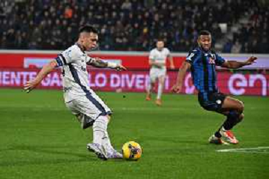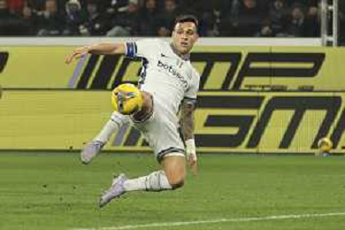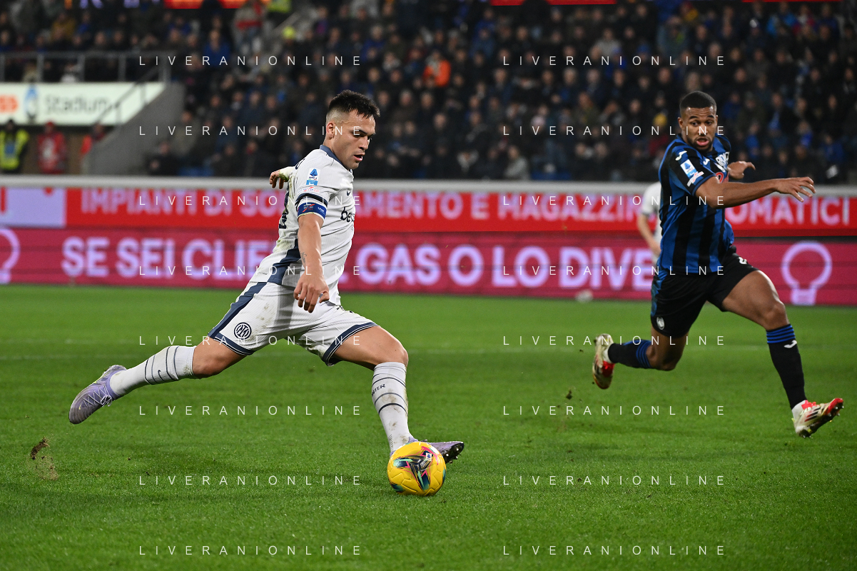 Lautaro Martínez of Inter FC play the ball during Atalanta BC vs Internazionale FC, 29° Serie A Enilive 2024-25 game at Gewiss stadium in Bergamo (BG), Italy, on March 16, 2025. (Photo by Davide Casentini) AG ALDO LIVERANI SAS