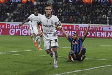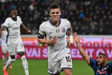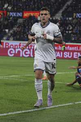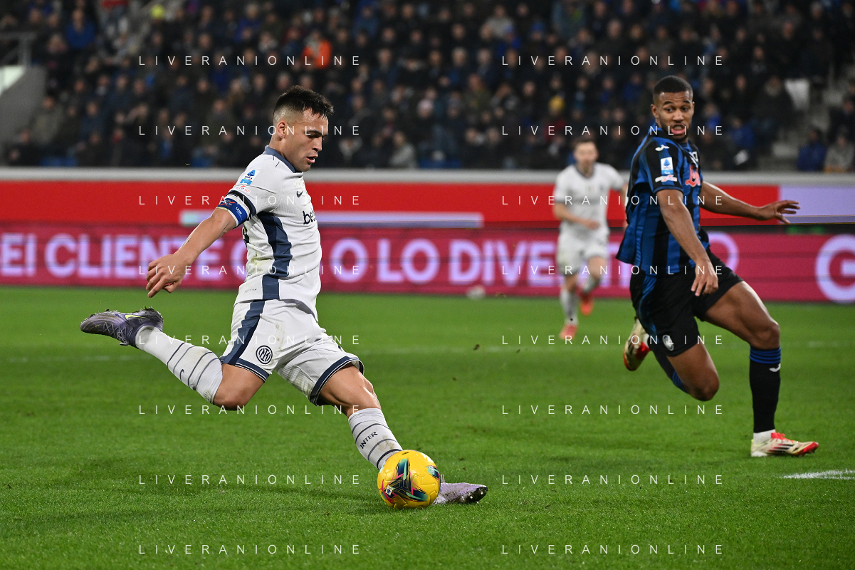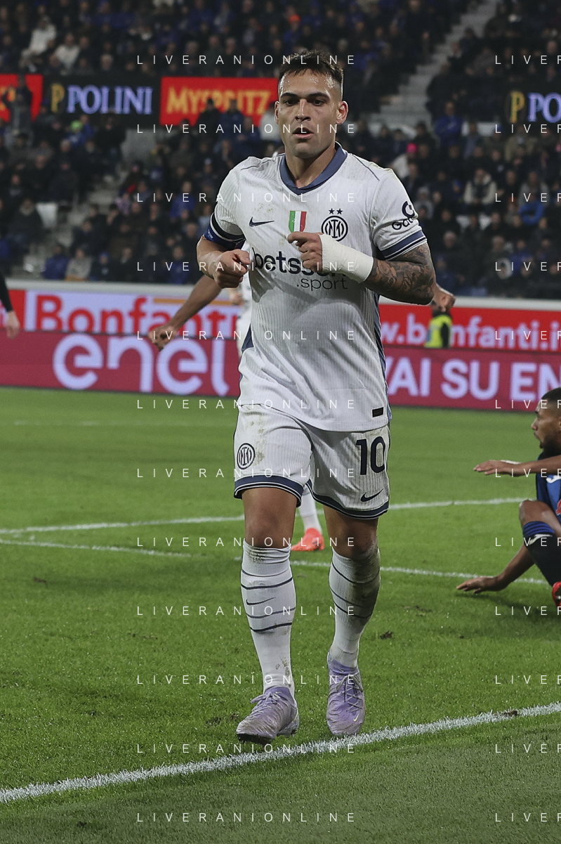 Lautaro Martínez of Inter FC scores a goal during Atalanta BC vs Internazionale FC, 29° Serie A Enilive 2024-25 game at Gewiss stadium in Bergamo (BG), Italy, on March 16, 2025. (Photo by Davide Casentini) AG ALDO LIVERANI SAS