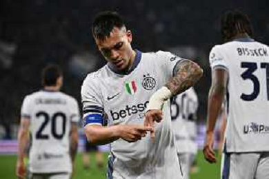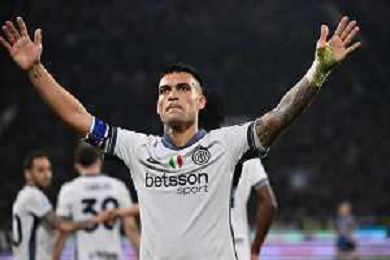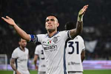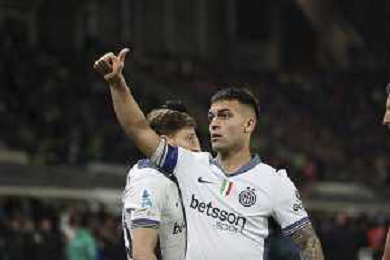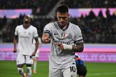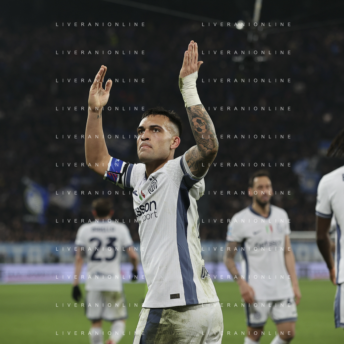 Lautaro Martínez of Inter FC gestures ok during Atalanta BC vs Internazionale FC, 29° Serie A Enilive 2024-25 game at Gewiss stadium in Bergamo (BG), Italy, on March 16, 2025. (Photo by Davide Casentini) AG ALDO LIVERANI SAS