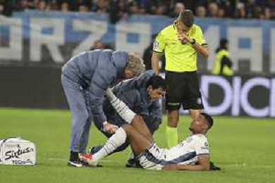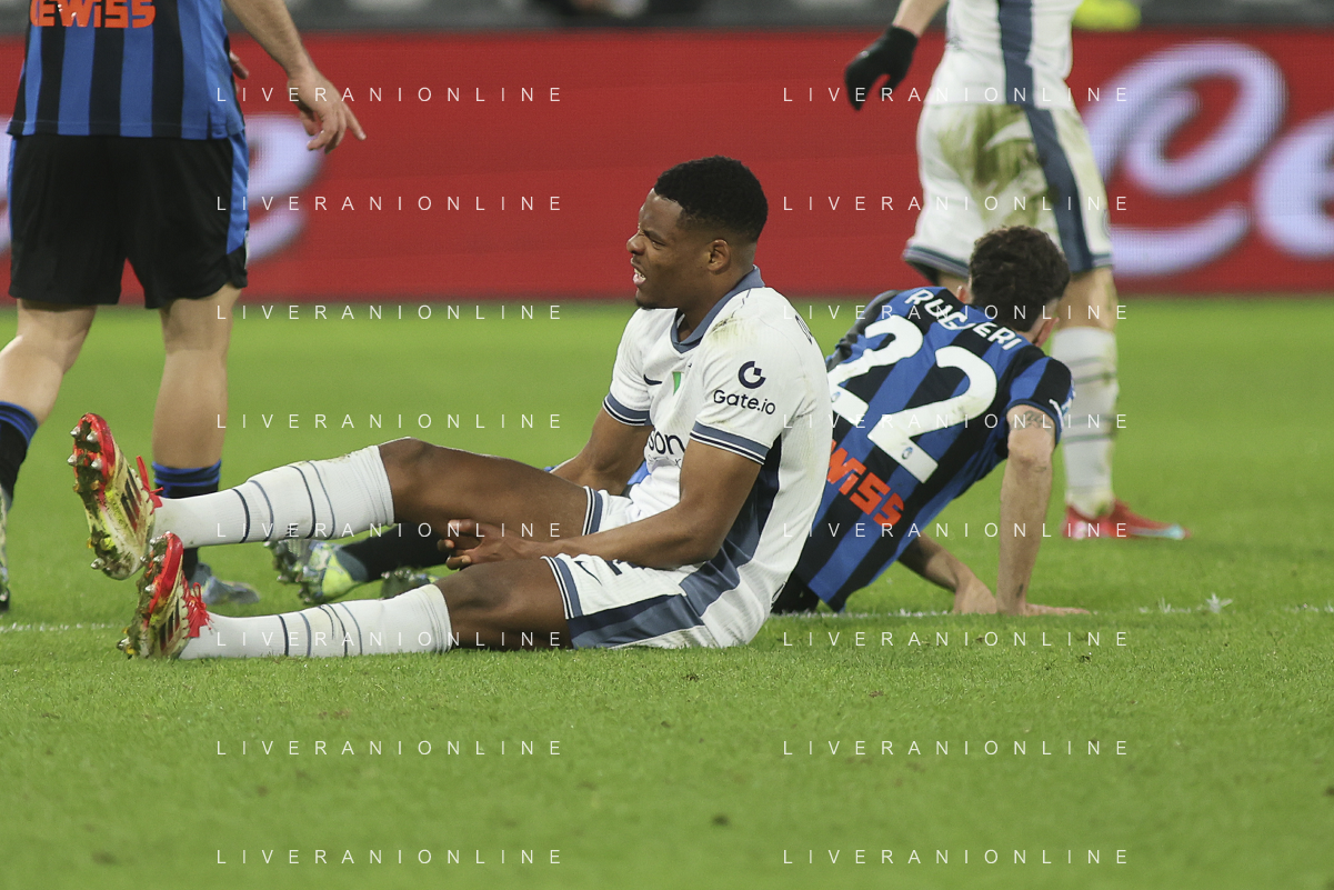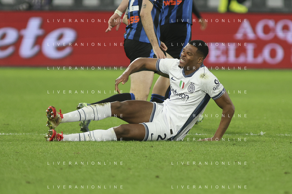 Denzel Dumfries of Inter FC have a incident during Atalanta BC vs Internazionale FC, 29° Serie A Enilive 2024-25 game at Gewiss stadium in Bergamo (BG), Italy, on March 16, 2025. (Photo by Davide Casentini) AG ALDO LIVERANI SAS