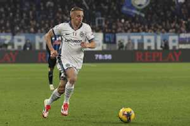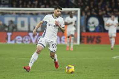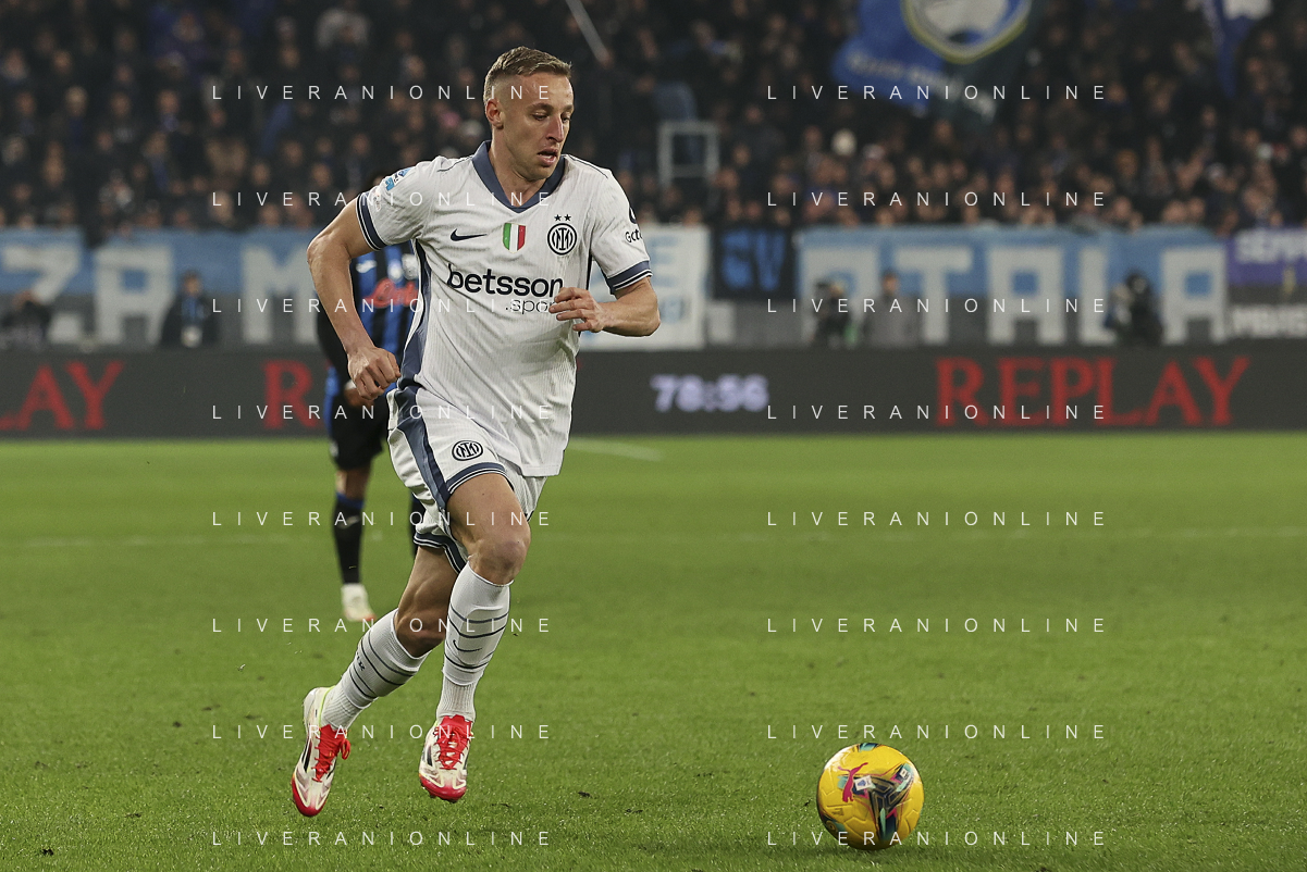 Davide Frattesi of Inter FC play the ball during Atalanta BC vs Internazionale FC, 29° Serie A Enilive 2024-25 game at Gewiss stadium in Bergamo (BG), Italy, on March 16, 2025. (Photo by Davide Casentini) AG ALDO LIVERANI SAS