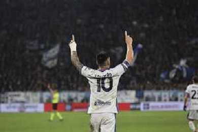 Lautaro Martínez of Inter FC jubilates after goal of Carlos Augusto of Inter FC during Atalanta BC vs Internazionale FC, 29° Serie A Enilive 2024-25 game at Gewiss stadium in Bergamo (BG), Italy, on March 16, 2025. (Photo by Davide Casentini) AG ALDO LIVERANI SAS