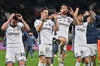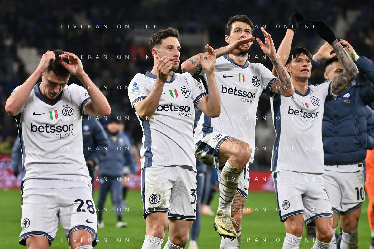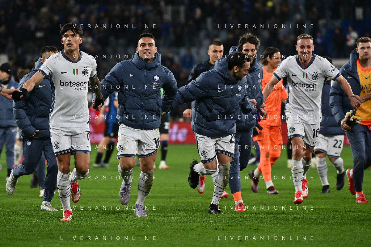 inter players celebrate the victory at the end of Atalanta BC vs Internazionale FC, 29° Serie A Enilive 2024-25 game at Gewiss stadium in Bergamo (BG), Italy, on March 16, 2025. (Photo by Davide Casentini) AG ALDO LIVERANI SAS