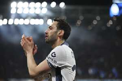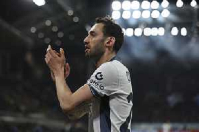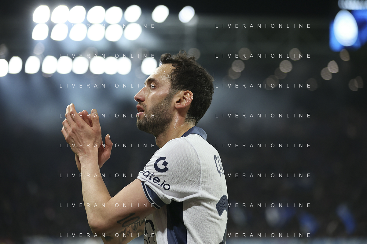 Hakan Çalhanoğlu of Inter FC claps the hand during Atalanta BC vs Internazionale FC, 29° Serie A Enilive 2024-25 game at Gewiss stadium in Bergamo (BG), Italy, on March 16, 2025. (Photo by Davide Casentini) AG ALDO LIVERANI SAS