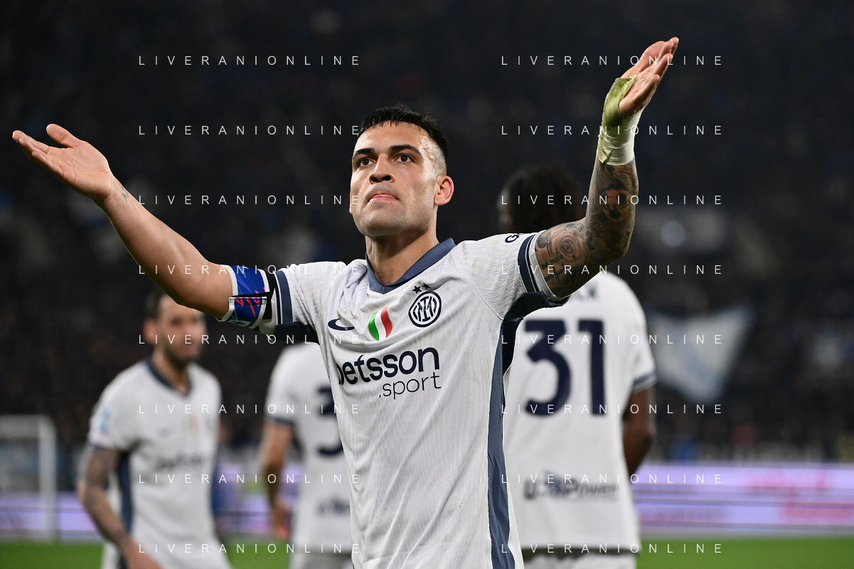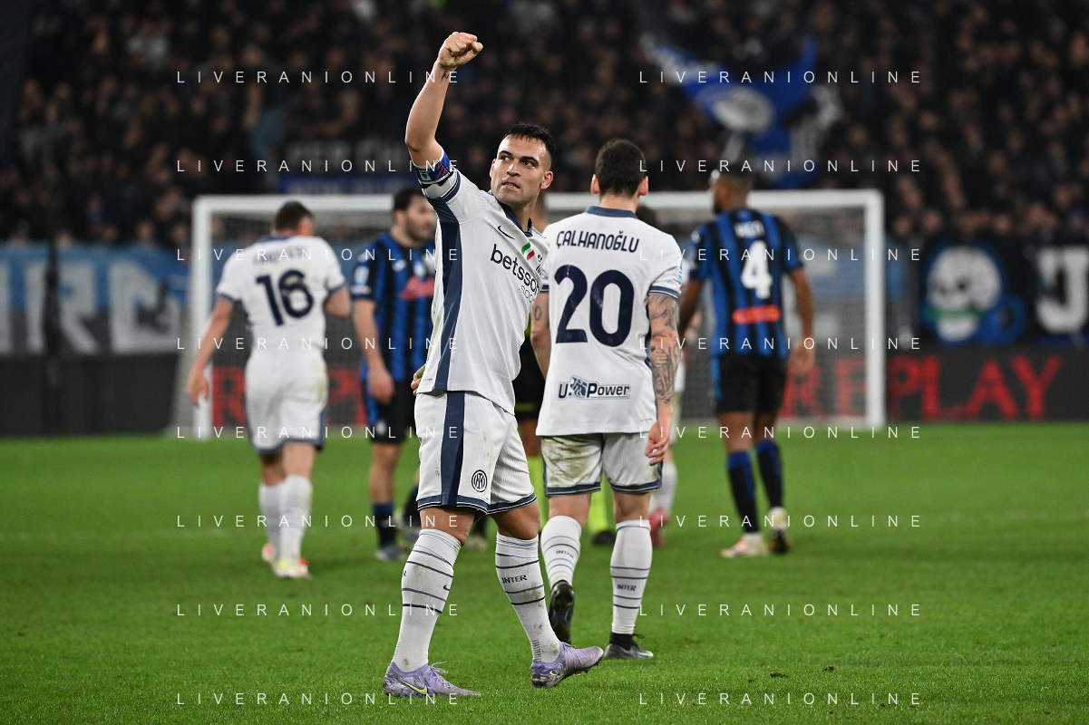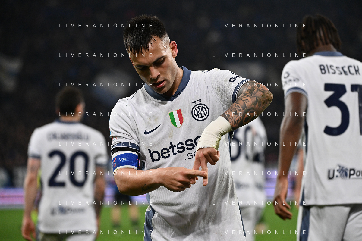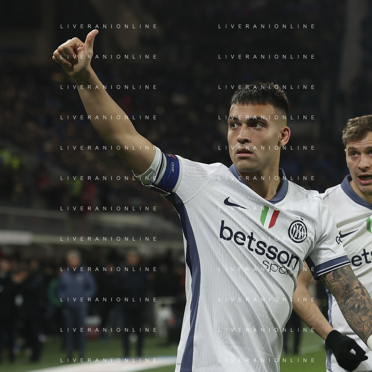 Lautaro Martínez of Inter FC celebrates after scoring goal during Atalanta BC vs Internazionale FC, 29° Serie A Enilive 2024-25 game at Gewiss stadium in Bergamo (BG), Italy, on March 16, 2025. (Photo by Davide Casentini) AG ALDO LIVERANI SAS