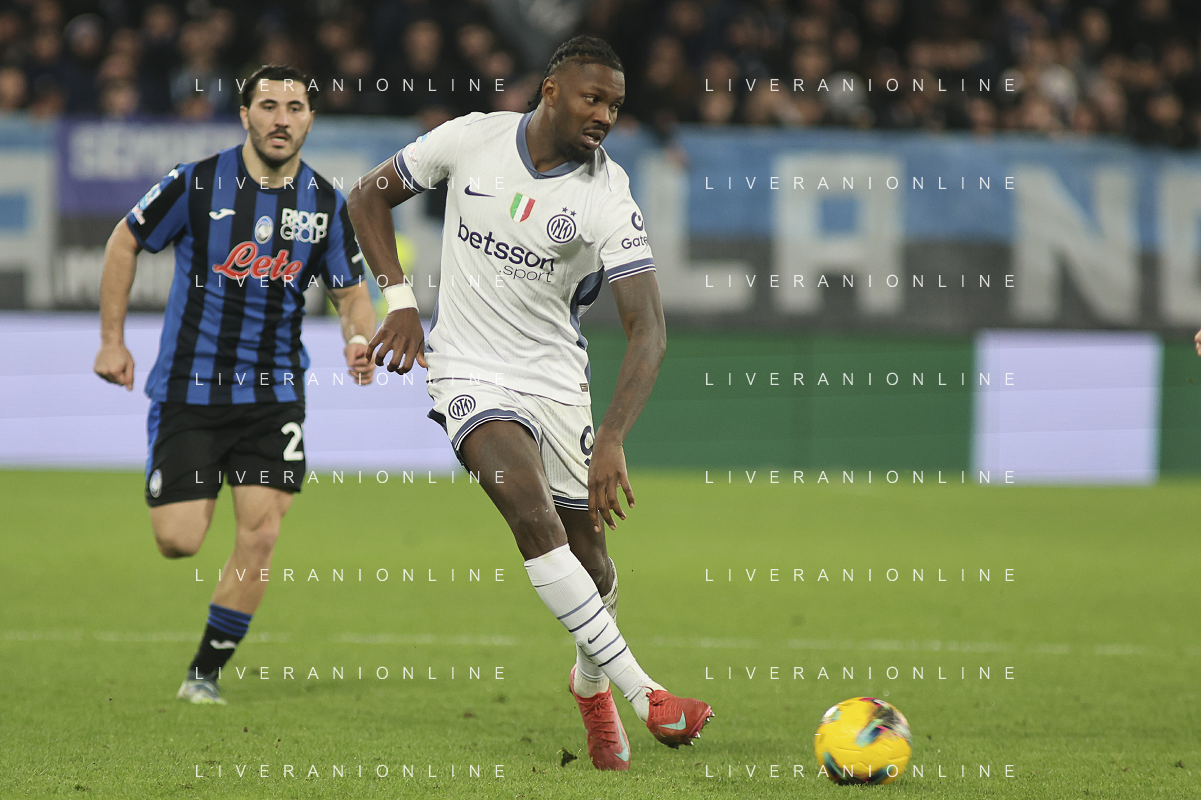 Marcus Thuram of Inter FC play the ball during Atalanta BC vs Internazionale FC, 29° Serie A Enilive 2024-25 game at Gewiss stadium in Bergamo (BG), Italy, on March 16, 2025. (Photo by Davide Casentini) AG ALDO LIVERANI SAS
