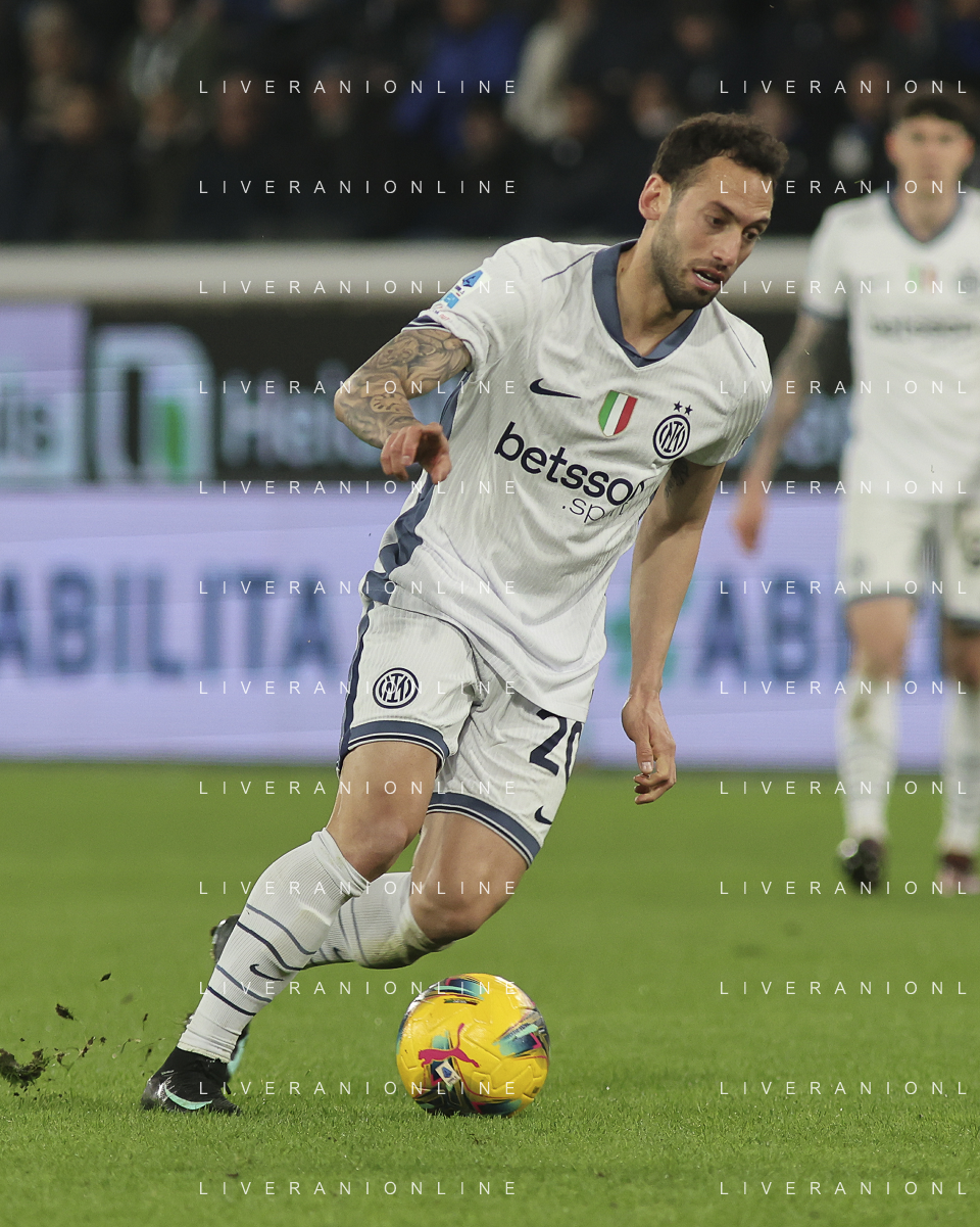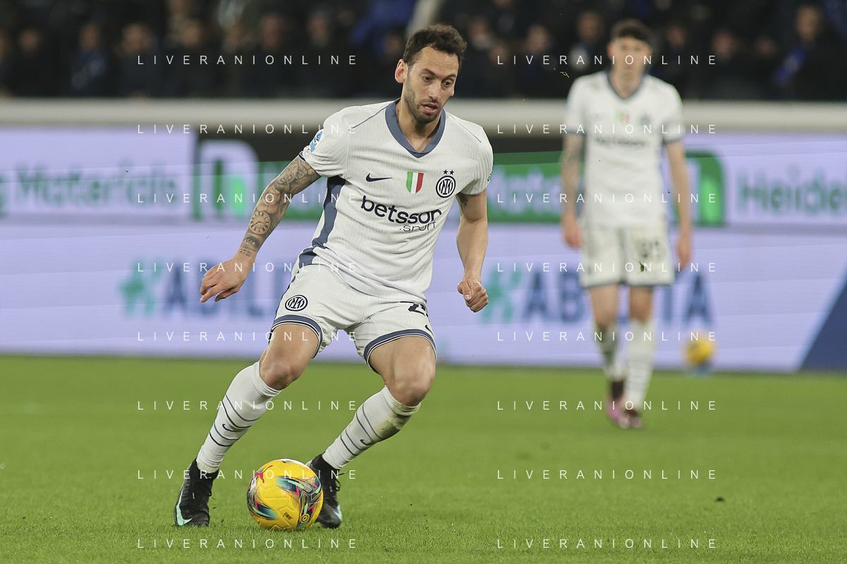 Hakan Çalhanoğlu of Inter FC play the ball during Atalanta BC vs Internazionale FC, 29° Serie A Enilive 2024-25 game at Gewiss stadium in Bergamo (BG), Italy, on March 16, 2025. (Photo by Davide Casentini) AG ALDO LIVERANI SAS