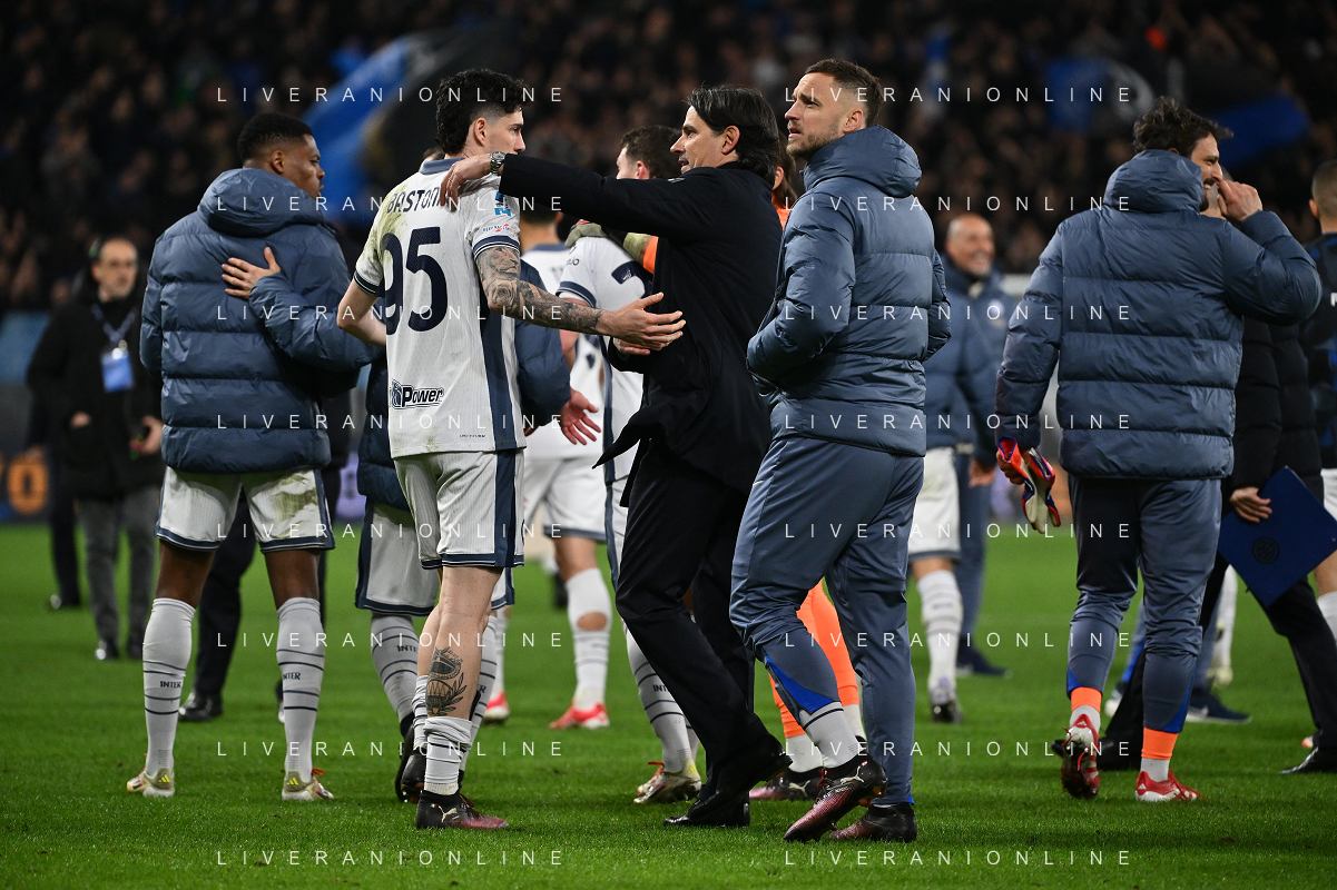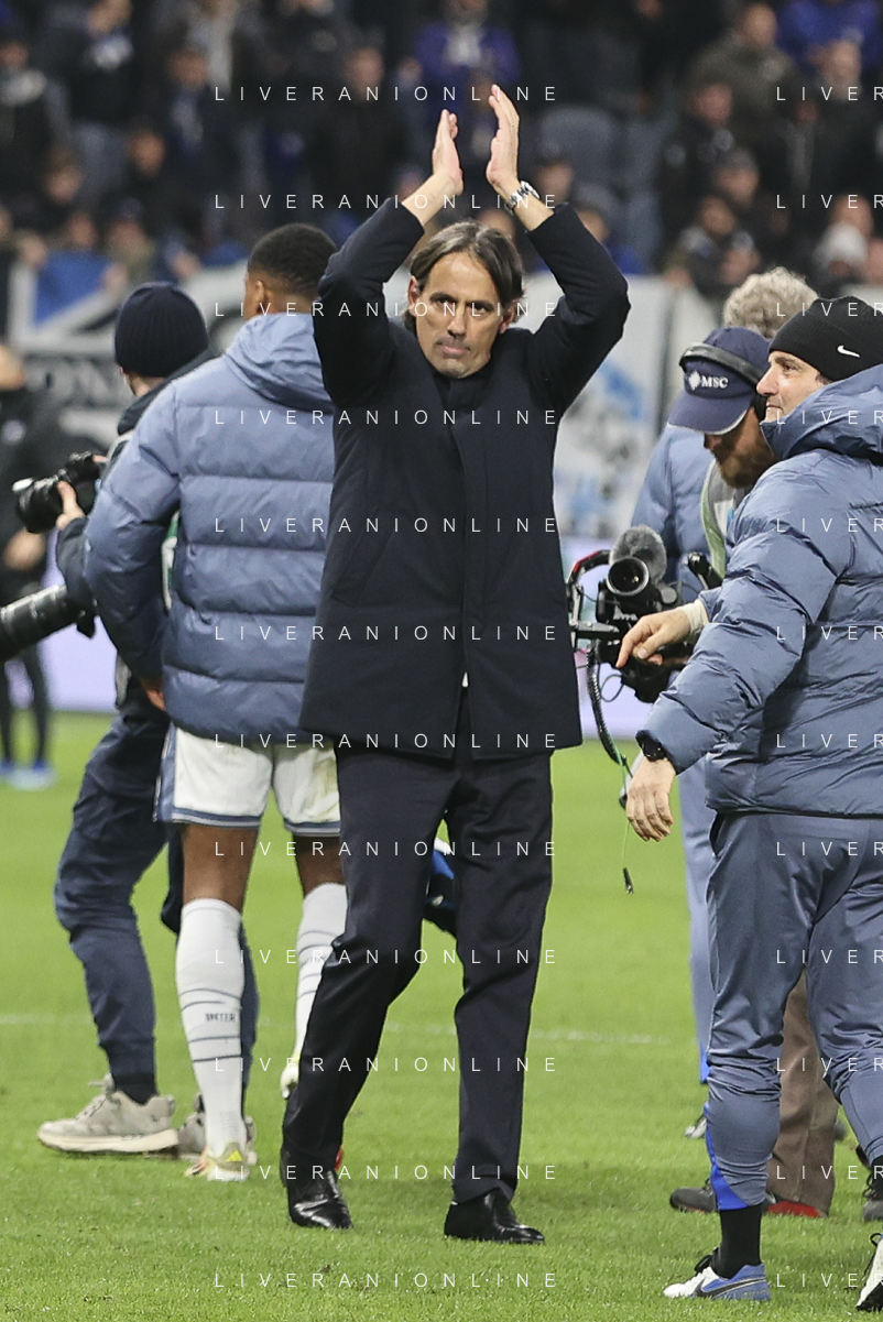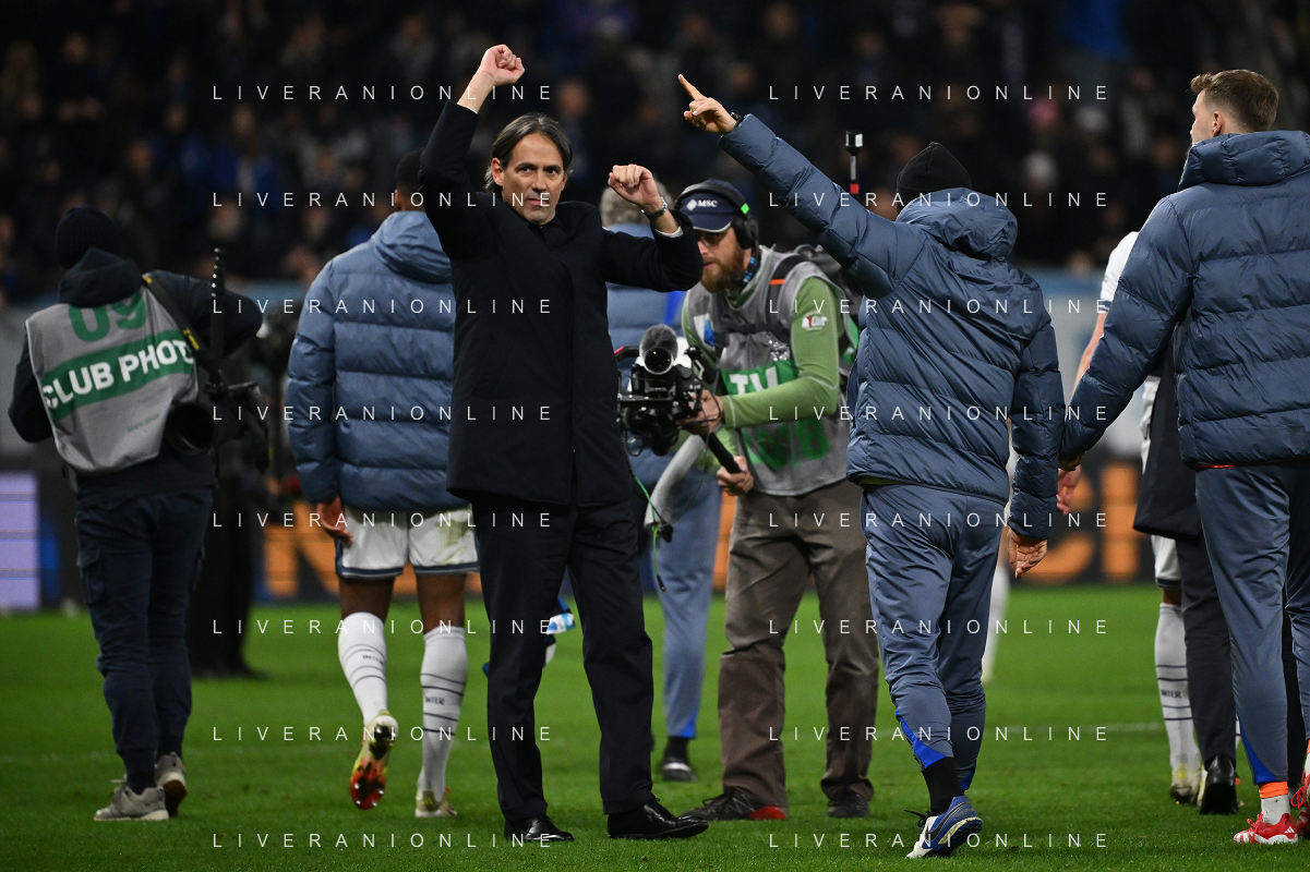 Simone Inzaghi Head Coach of Inter FC celebrate the victory at the end of Atalanta BC vs Internazionale FC, 29° Serie A Enilive 2024-25 game at Gewiss stadium in Bergamo (BG), Italy, on March 16, 2025. (Photo by Davide Casentini) AG ALDO LIVERANI SAS