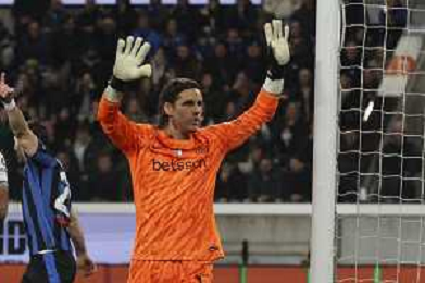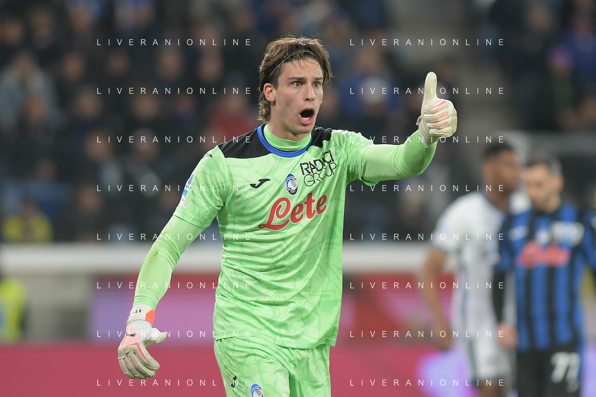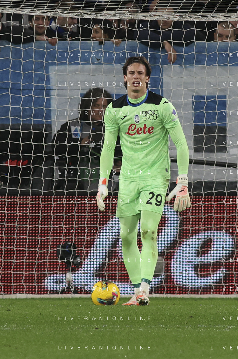 Marco Carnesecchi of Atalanta BC. play the ball during Atalanta BC vs Internazionale FC, 29° Serie A Enilive 2024-25 game at Gewiss stadium in Bergamo (BG), Italy, on March 16, 2025. (Photo by Davide Casentini) AG ALDO LIVERANI SAS