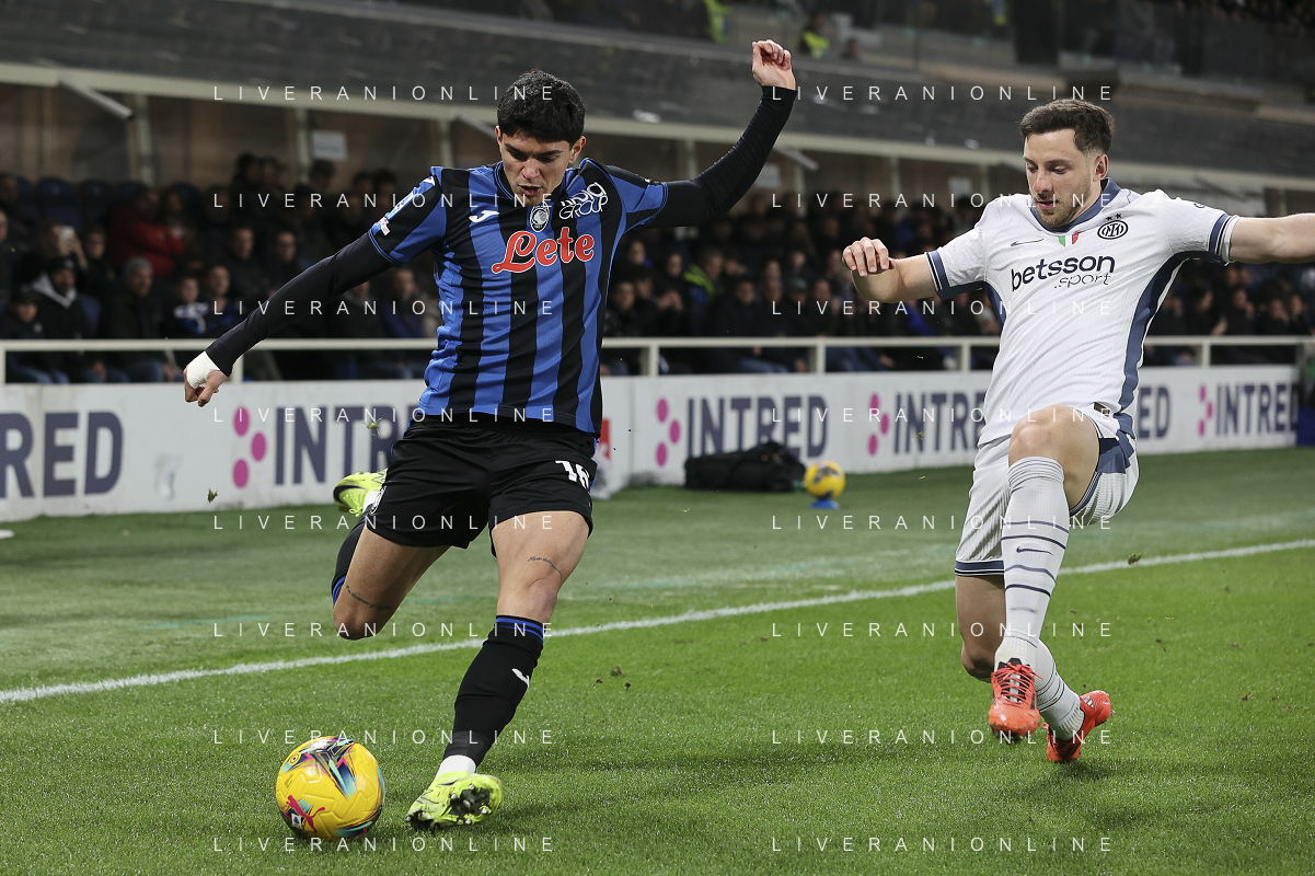 Raul Bellanova of Atalanta BC play the ball during Atalanta BC vs Internazionale FC, 29° Serie A Enilive 2024-25 game at Gewiss stadium in Bergamo (BG), Italy, on March 16, 2025. (Photo by Davide Casentini) AG ALDO LIVERANI SAS
