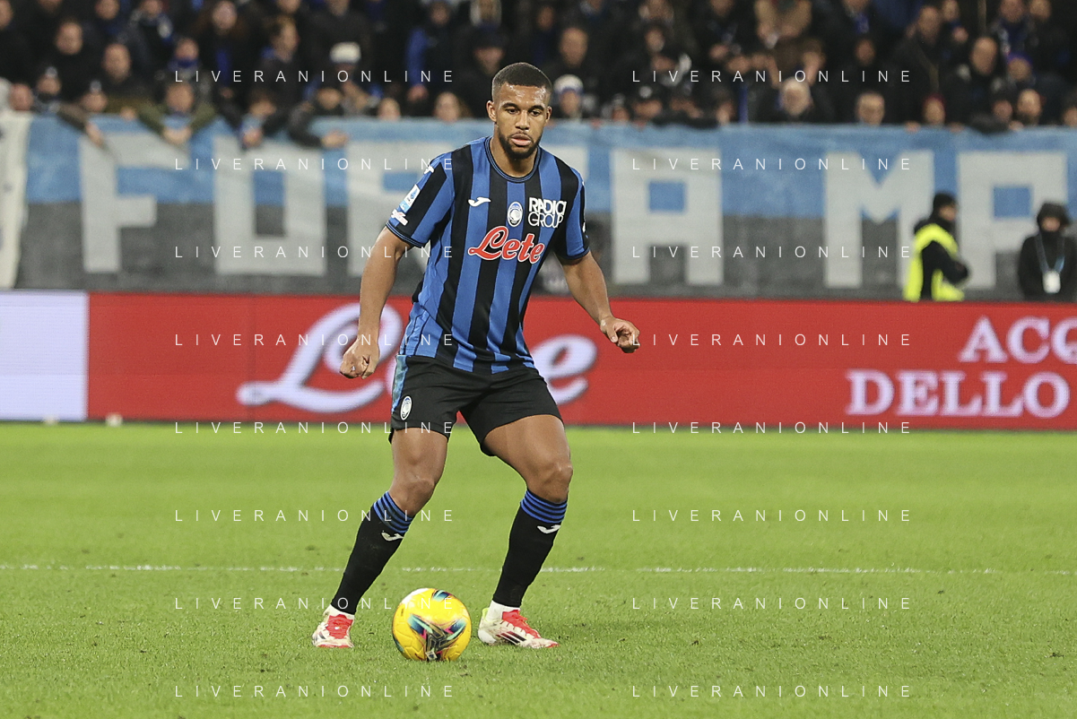 Berat Djimsiti of Atalanta BC play the ball during Atalanta BC vs Internazionale FC, 29° Serie A Enilive 2024-25 game at Gewiss stadium in Bergamo (BG), Italy, on March 16, 2025. (Photo by Davide Casentini) AG ALDO LIVERANI SAS