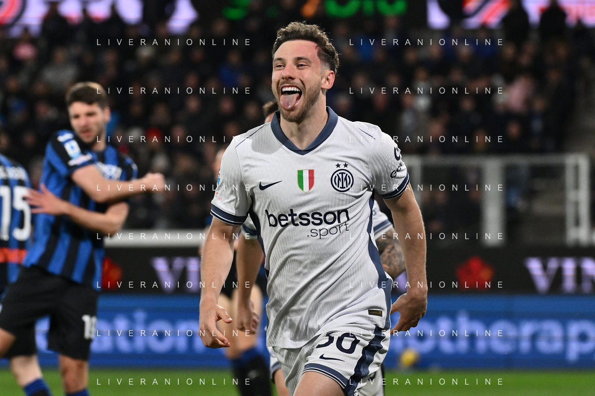 Nicolò Barella of Inter FC during Atalanta BC vs Internazionale FC, 29° Serie A Enilive 2024-25 game at Gewiss stadium in Bergamo (BG), Italy, on March 16, 2025. (Photo by Davide Casentini) AG ALDO LIVERANI SAS