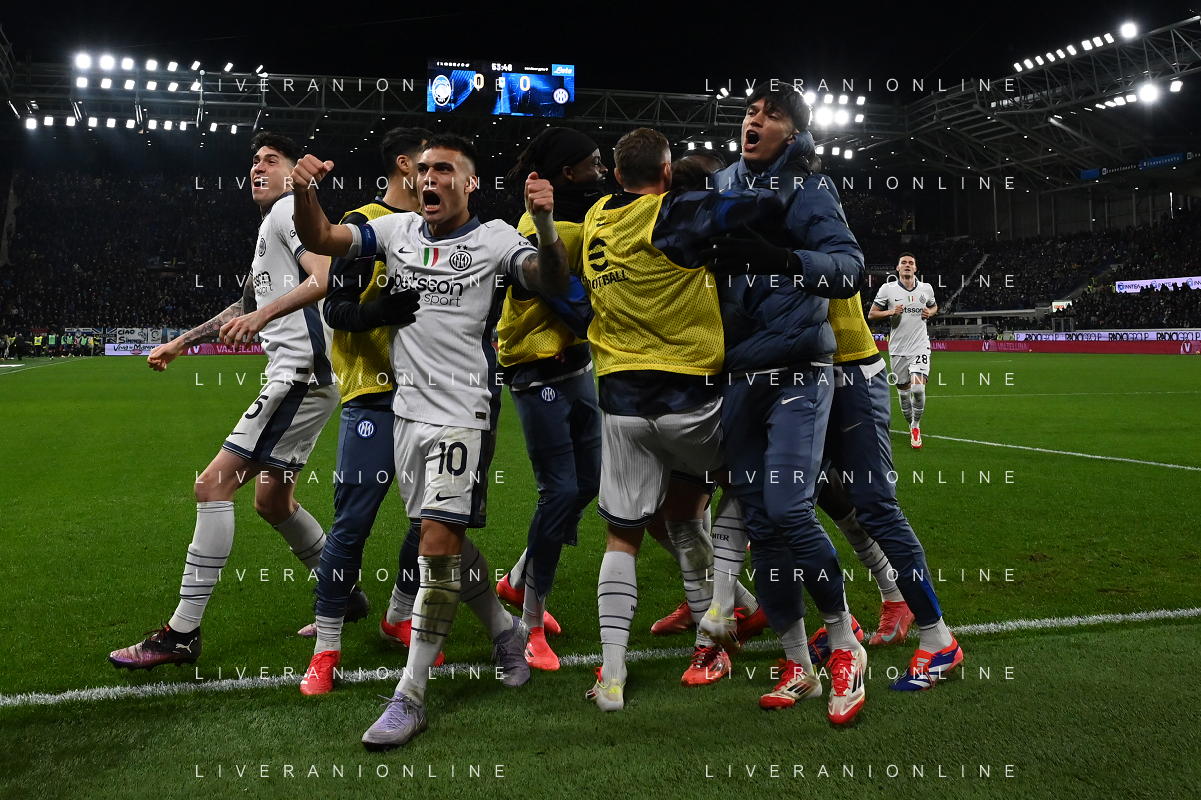 Atalanta vs Inter nella foto giocatori Inter esultanza dopo il gol dell'1 a 0 Bergamo 16-03-2025 Gewiss Stadium Campionato Serie A Enilive - 29a giornata foto Roberto Garavaglia/Agenzia Aldo Liverani sas- AGENZIA ALDO LIVERANI SAS