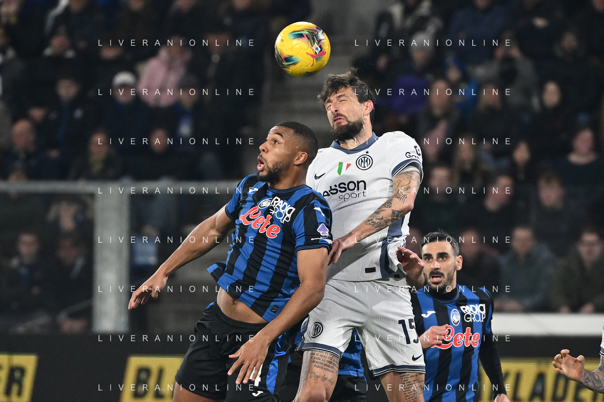 Atalanta vs Inter nella foto Isak Hien (Atalanta) e Francesco Acerbi (Inter) Bergamo 16-03-2025 Gewiss Stadium Campionato Serie A Enilive - 29a giornata foto Roberto Garavaglia/Agenzia Aldo Liverani sas- AGENZIA ALDO LIVERANI SAS