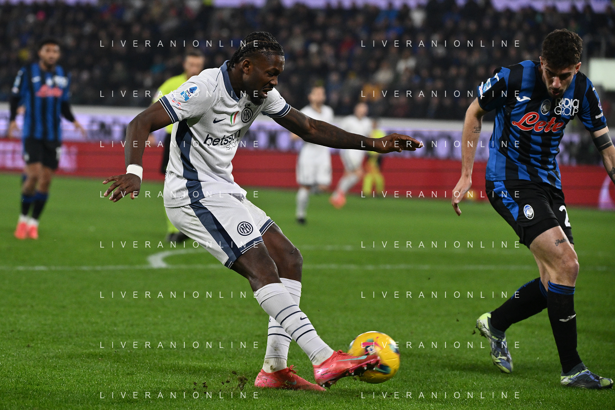 Ademola Lookman of Atalanta BC play the ball during Atalanta BC vs Internazionale FC, 29° Serie A Enilive 2024-25 game at Gewiss stadium in Bergamo (BG), Italy, on March 16, 2025. (Photo by Davide Casentini) AG ALDO LIVERANI SAS