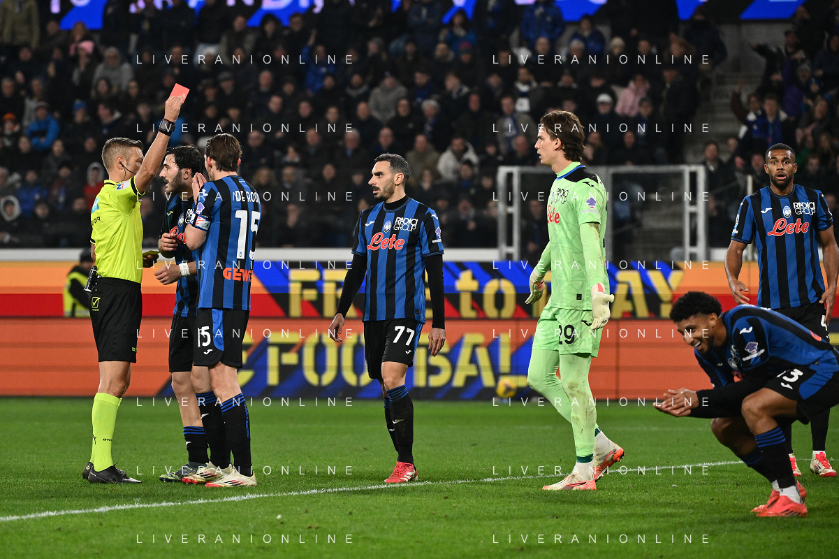 Atalanta vs Inter nella foto l'arbitro Davide Massa di Imperia espelle Ederson Jose' dos Santos (Atalanta) Bergamo 16-03-2025 Gewiss Stadium Campionato Serie A Enilive - 29a giornata foto Roberto Garavaglia/Agenzia Aldo Liverani sas- AGENZIA ALDO LIVERANI SAS