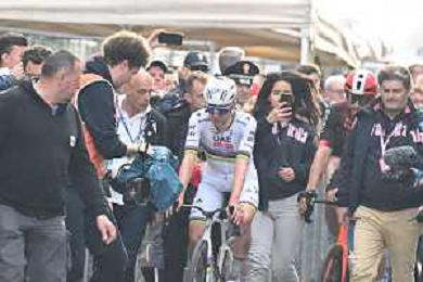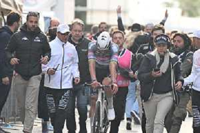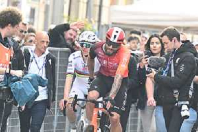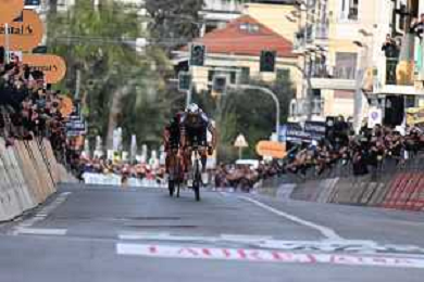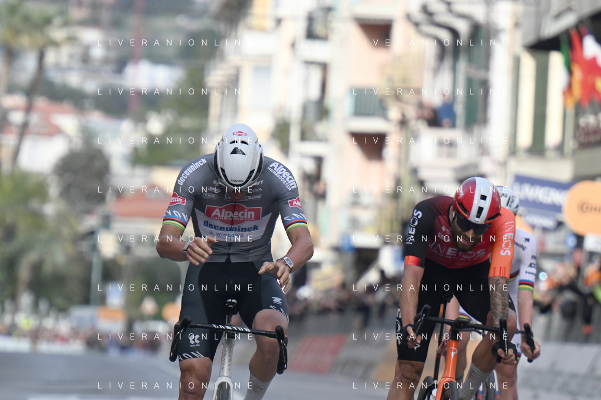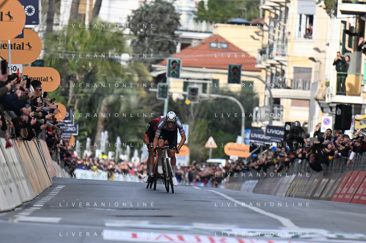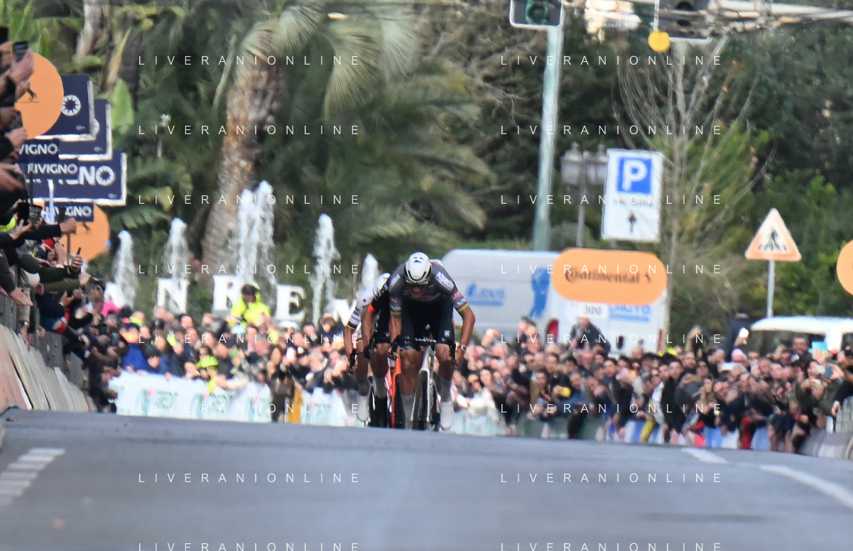 22-03-2025 Milano - Sanremo; 2025, Alpecin - Deceuninck; 2025, Ineos Grenadiers; Van Der Poel, Mathieu; Ganna, Filippo; Sanremo; ©SIROTTI - AGENZIA ALDO LIVERANI SAS