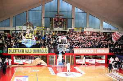 IMOLA 23 03 2025 UP ANDREA COSTA BASKET-NEUPHARMA VIRTUS IMOLA SERIE B1 100-85 NELLA FOTO STRISCIONE DELLA CURVA NEUPHARMA VIRTUS IMOLA TIFOSI ©SANNA - AGENZIA ALDO LIVERANI SAS