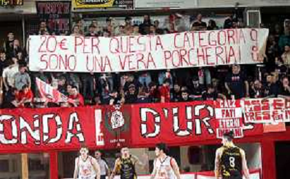 IMOLA 23 03 2025 UP ANDREA COSTA BASKET-NEUPHARMA VIRTUS IMOLA 100-85 NELLA FOTO TIFOSI UP ANDREA COSTA IMOLA STRISCIONE CON LA SCRITTA CONTRO PREZZO ELEVATO DEI BIGLIETTI FOTO GIANNI SANNA-AG ALDO LIVERANI SAS