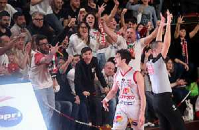 IMOLA 23 03 2025 UP ANDREA COSTA BASKET-NEUPHARMA VIRTUS IMOLA 100-85 NELLA FOTO LUCA FAZZI UP ANDREA COSTA ESULTA CON IL PUBBLICO FOTO GIANNI SANNA-AG ALDO LIVERANI SAS