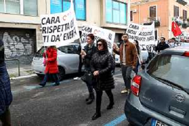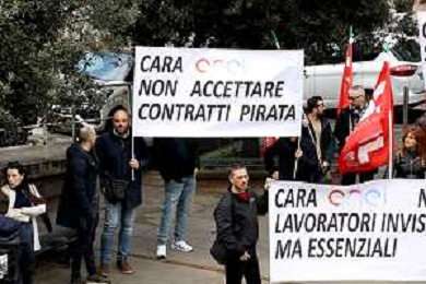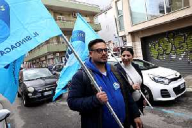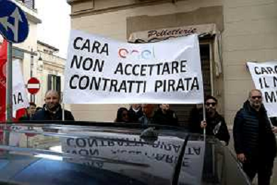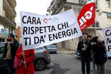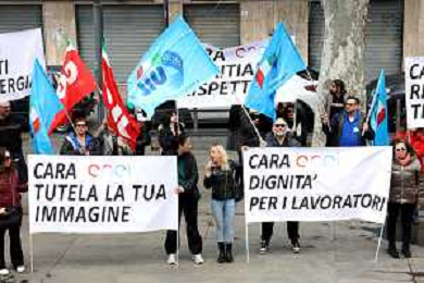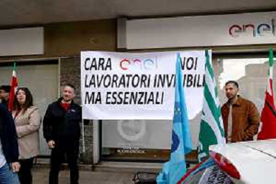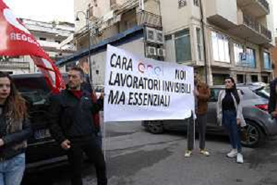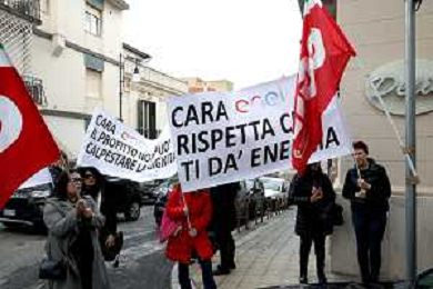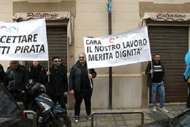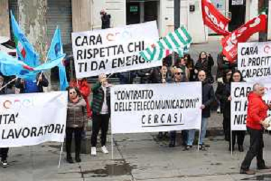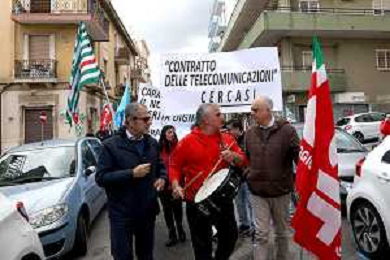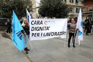 Reggio Calabria 31/03/2025 Manifestazione indetta dai Sindacati UILCOM; CGIL; CISL; UGL dei Lavoratori di due grossi Call-Center che operano in città, che hanno come Committenti ENEL. Sollecitano il rinnovo del Contratto delle Telecomunicazioni e Invitano ENEL a non accettare il Contratto Pirata reso attivo dal 01/02/2025 ad opera della Network -Contacts con sede a Molfetta(Bari) siglato da una sola sigla Sindacale Cisal che non li rapprensenta, questo contratto va a ledere i diritti dei lavoratori guadagnati fin'ora. Foto Pasquale Garreffa Agenzia Aldo Liverani SAS