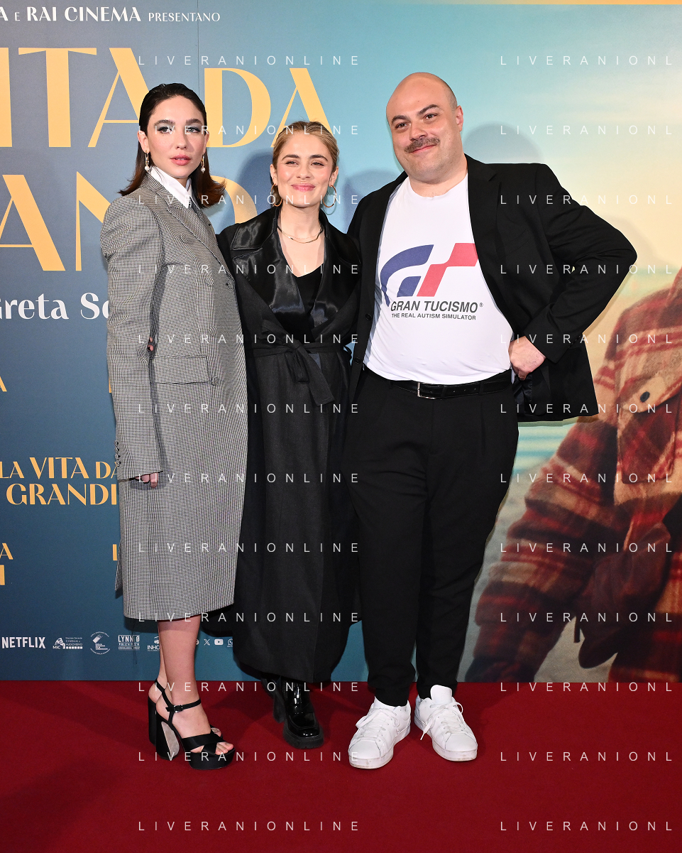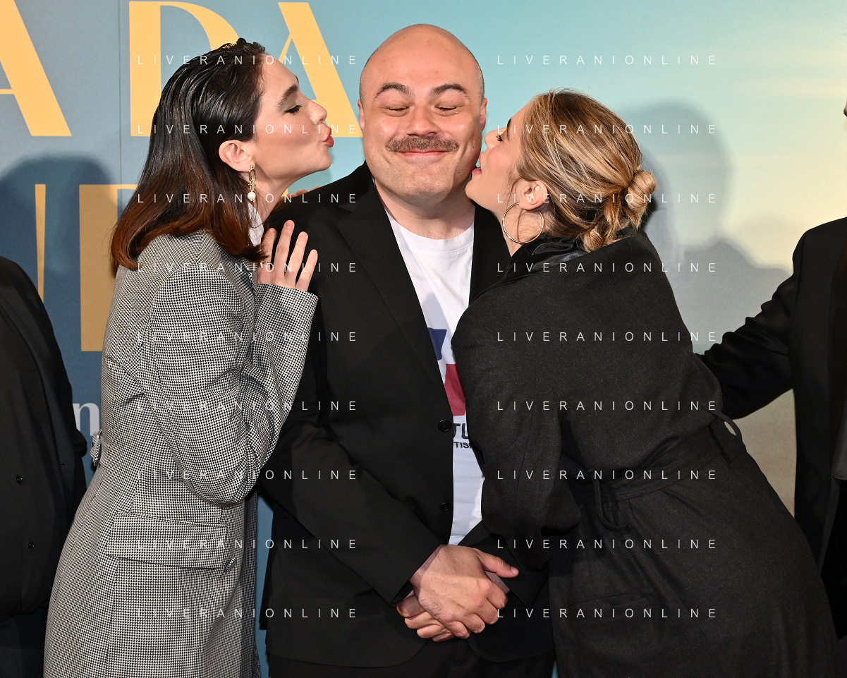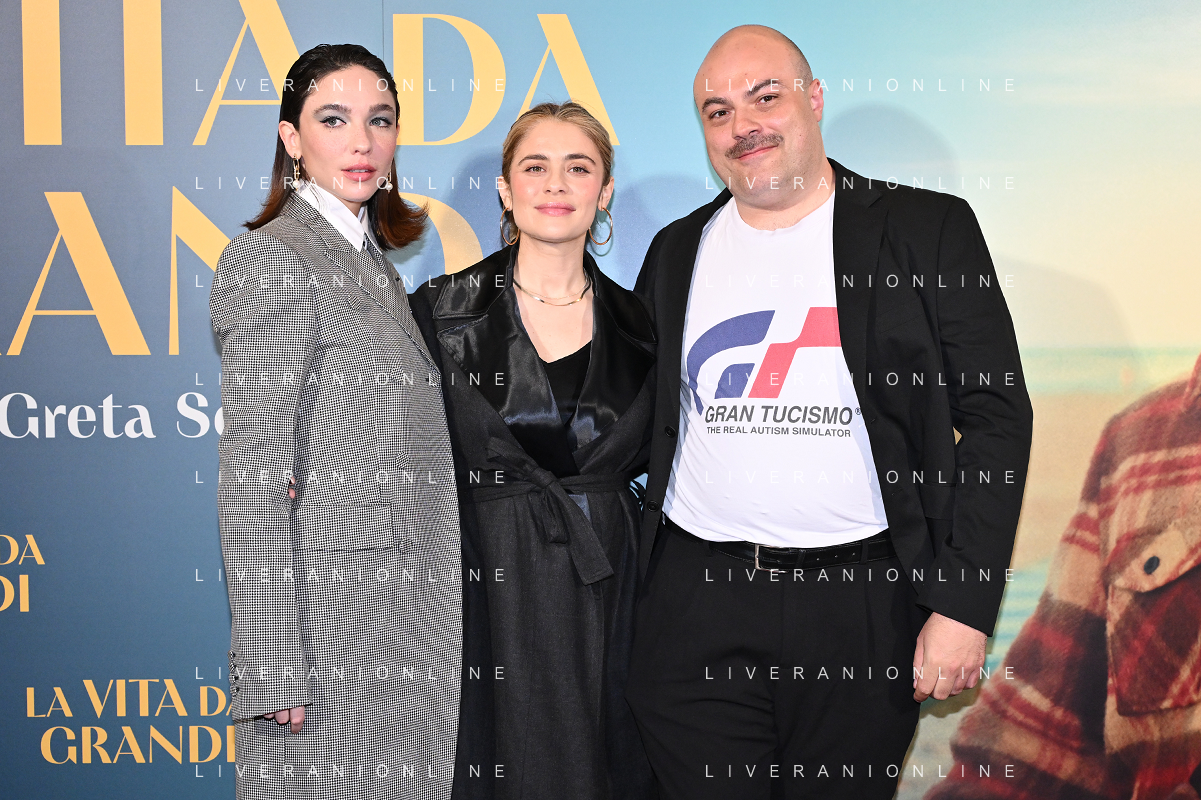 TVRG Photocall La Vita da Grandi nella foto da SX Matilda De Angelis, Yuri Tuci e Greta Scarano Milano 01-04-2025 Photocall con i protagonisti del film La Vita da Grandi foto Roberto Garavaglia/Agenzia Aldo Liverani sas