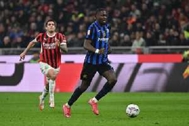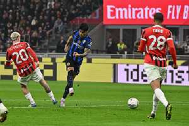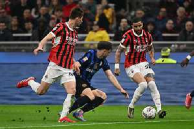 Milan vs Inter nella foto Carlos Augusto (Inter) tra Matteo Gabbia (Milan) e Kyle Walker (Milan) Milano 02-04-2025 Stadio Giuseppe Meazza - San Siro Coppa Italia Frecciarossa - semifinale gara di andata foto Roberto Garavaglia/Agenzia Aldo Liverani sas- AGENZIA ALDO LIVERANI SAS