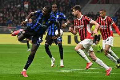Milan vs Inter nella foto Theo Hernandez (Milan) e Yann Aurel Bisseck (Inter) Milano 02-04-2025 Stadio Giuseppe Meazza - San Siro Coppa Italia Frecciarossa - semifinale gara di andata foto Roberto Garavaglia/Agenzia Aldo Liverani sas- AGENZIA ALDO LIVERANI SAS