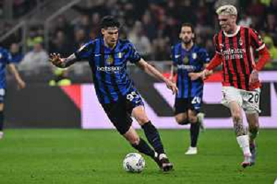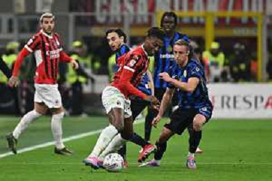 Milan vs Inter nella foto Rafael Leao (Milan) e Davide Frattesi (Inter) Milano 02-04-2025 Stadio Giuseppe Meazza - San Siro Coppa Italia Frecciarossa - semifinale gara di andata foto Roberto Garavaglia/Agenzia Aldo Liverani sas- AGENZIA ALDO LIVERANI SAS