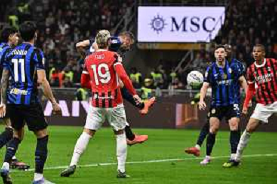 Milan vs Inter nella foto Theo Hernandez (Milan) occasione da gol Milano 02-04-2025 Stadio Giuseppe Meazza - San Siro Coppa Italia Frecciarossa - semifinale gara di andata foto Roberto Garavaglia/Agenzia Aldo Liverani sas- AGENZIA ALDO LIVERANI SAS