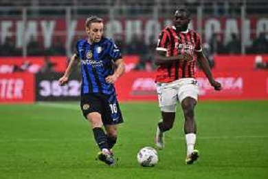 Milan vs Inter nella foto Davide Frattesi (Inter) e Theo Hernandez (Milan) Milano 02-04-2025 Stadio Giuseppe Meazza - San Siro Coppa Italia Frecciarossa - semifinale gara di andata foto Roberto Garavaglia/Agenzia Aldo Liverani sas- AGENZIA ALDO LIVERANI SAS