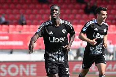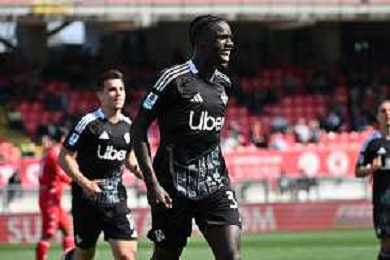 TVRG Monza vs Como nella foto Assane Diao (Como), coperto, segna il gol del 2 a 1 Monza 05-04-2025 U-Power Stadium Campionato Serie A Enilive - 31a giornata foto Roberto Garavaglia/Agenzia Aldo Liverani sas