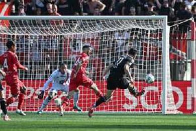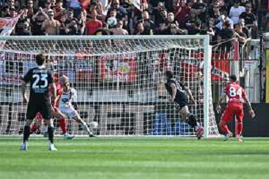 TVRG Monza vs Como nella foto Jonathan Ikone’ (Como), coperto, segna il gol dell'1 a 1 Monza 05-04-2025 U-Power Stadium Campionato Serie A Enilive - 31a giornata foto Roberto Garavaglia/Agenzia Aldo Liverani sas